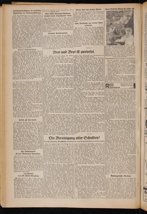 ** Eine Dreiund achtzigjährige. Frau Elise Hofmann, Dammstraße 25, begeht am Montag, 5. September, in geistiger und körperlicher Frische ihren 83. Geburtstag. Sie ist seit 1877 treue Leserin des Gießener Anzeigers. (Wir gratulieren!)