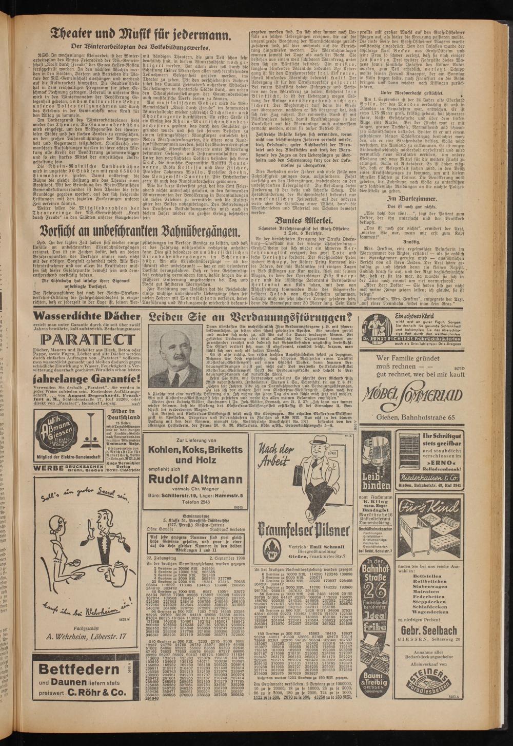 3n der heutigen Nachmittagsziehung wurden gezogen 6 Gewinne zu 10000 RM. 114290 123246 139898 2 Gewinne zu 5000 RM. 235071