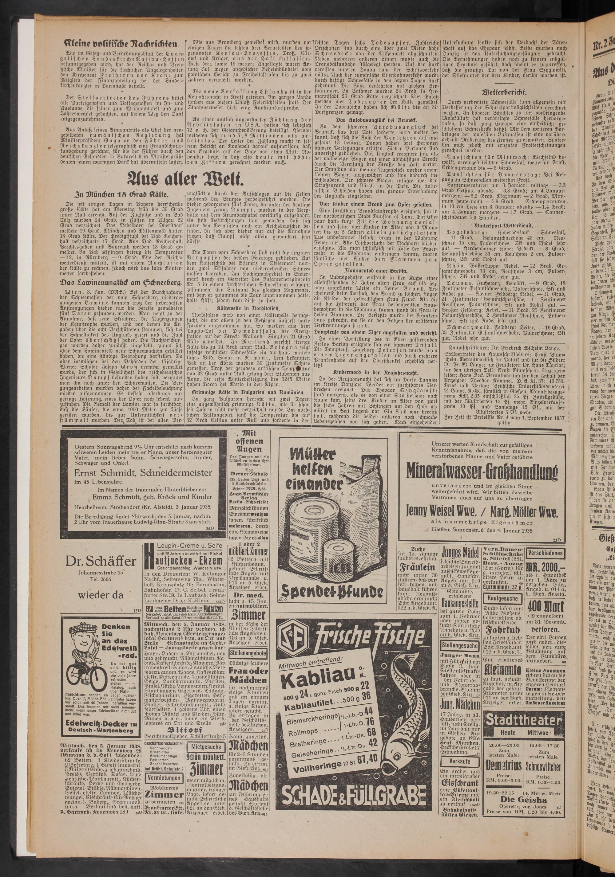 > Gießen, Sonnenstr, 6, den 4. Januar 1938