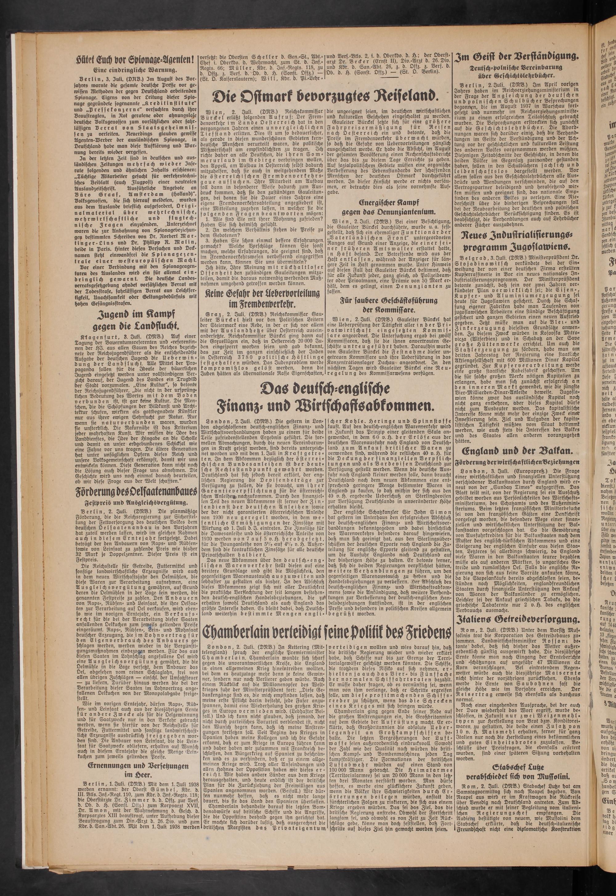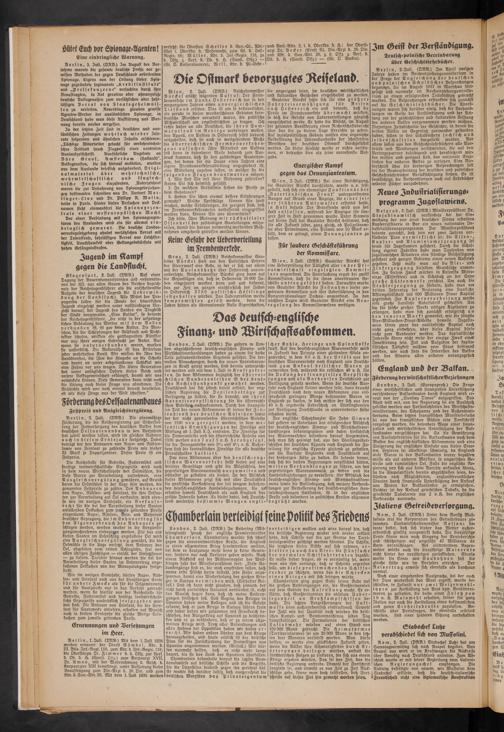 Gauleiter Bürckel setzte sich für eine größere Fahrpreisermäßigung für Reisen nach Oe st erreich ein und betonte, daß die Preise im Fremdenverkehr überwacht würden, so daß die Gefahr von Übervorteilungen gänzlich ausgeschaltet werde. Er habe die Absicht, im August der gesamten Bevölkerung einen Rechenschaftsbericht über das bis zu diesem Tage Erreichte zu geben. Auf sozialpolitischem Gebiete müssen eine organische Verbesserung des Lebensstandards der schaffenden Menschen 'der deutschen Ostmark durchgeführt werden. In dieser Hinsicht werde er nichts versäumen, er betrachte dies als seine vornehmste Aufgabe.