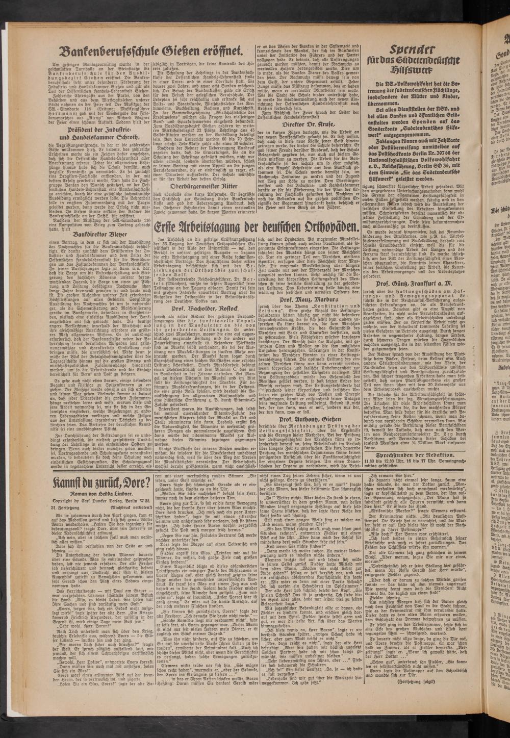 Am gestrigen Montagvormittag wurde in der geschmückten Turnhalle an der Steinstraße die Bankenberufsschule für den Ausbildungsbezirk Gießen eröffnet. Die Banken- berufsschule steht unter besonderer Förderung der Industrie- und Handelskammer Gießen und güt als Tell der Oeffentlichen Handels-Lehranstalt Gießen.