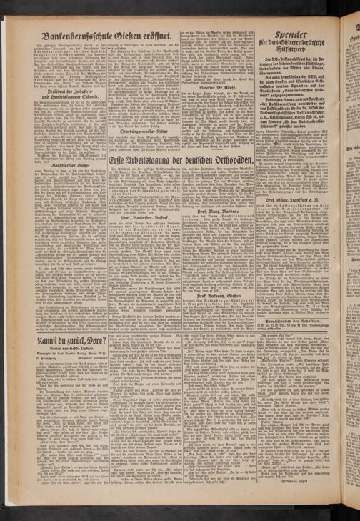 Im Anschluß an die gestrige Eröffnungssitzung der 33. Tagung her Deutschen Orthopädischen Gesellschaft in her Aula her Universität — vgl. den Bericht in unserer gestrigen Ausgabe — begann die erste Arbeitstagung mit einer Reihe fachwissenschaftlicher Vorträge. Das Hauptthema dieser ersten Arbeitstagung beschäftigte sich mit den B e - Ziehungen der Orthopädie zum schaffenden Volk.