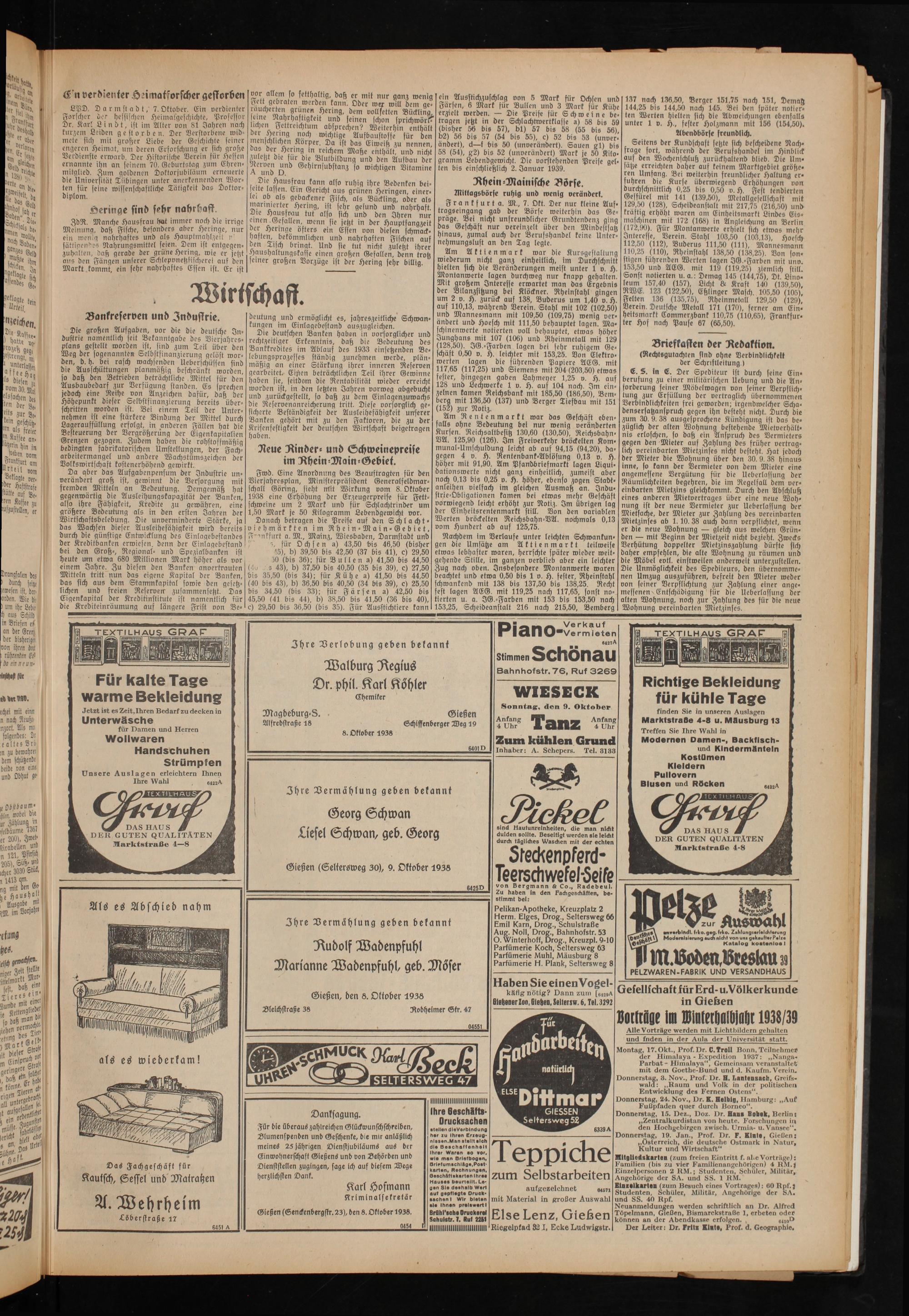 Gießen (Senckenbergstr. 23), den 8. Oktober 1938.