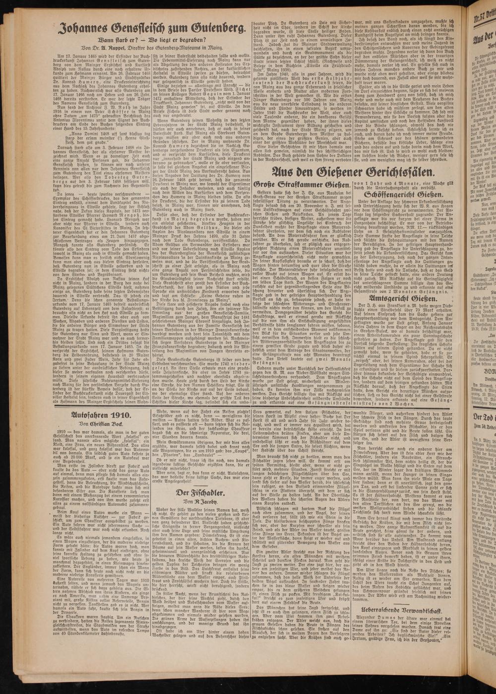 Im Jahre 1940, also in zwei Jahren, wird die gesamte zivilisierte Welt das erste Halbjahrtausend der Buchdruckerkunst feiern, die von Mainz aus das ganze Erdenrund in friedlicher Weise eroberte und Mutter allen modernen Fortschrittes in der Welt geworden ist. Wie die ersten Jünger Gutenbergs vor 500 Jahren von, Mainz aus die neue unerhörte Erfindung in die anderen Städte und Länder hinaustrugen, so werden im Jahre 1940 die Buchdrucker der Welt, aber auch viele Tausende anderer, die ein dankbares Gefühl dem Manne gegenüber haben, der ihnen dieses wichtigste Instrument ihrer Bildung geschaffen und geschenkt hat, nach der Stadt Mainz pilgern, um an dem Grabe Gutenbergs dem Meister zu huldigen, der eines der größten Genies, aber auch einer der größten Wohltäter der Menschheit war.