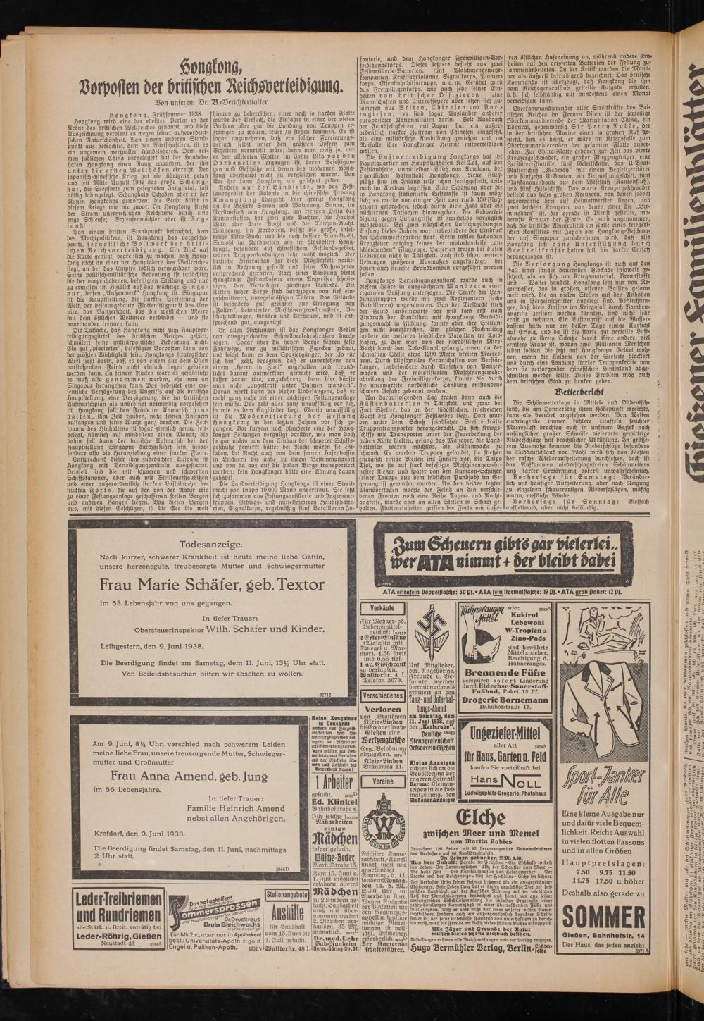 Leihgestern, den 9. Juni 1938.