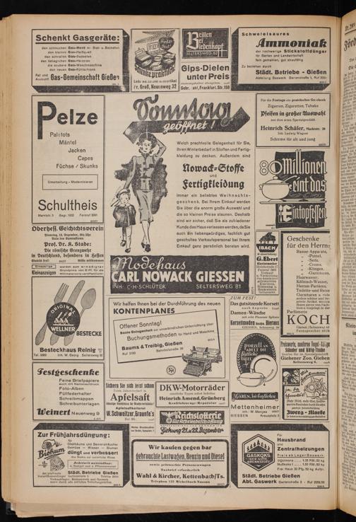 immer ein beliebtes Weihnachtsgeschenk. Bei Ihrem Einkauf werden Sie über die enorm große Auswahl und die so kleinen Preise staunen. Deshalb sind wir sicher, daß Sie als zufriedener Kunde das Haus verlassen werden, daSie auch ein liebenswürdiges, fachlich gut geschultes Verkaufspersonal bei Ihrem Einkauf ganz persönlich beraten wird.