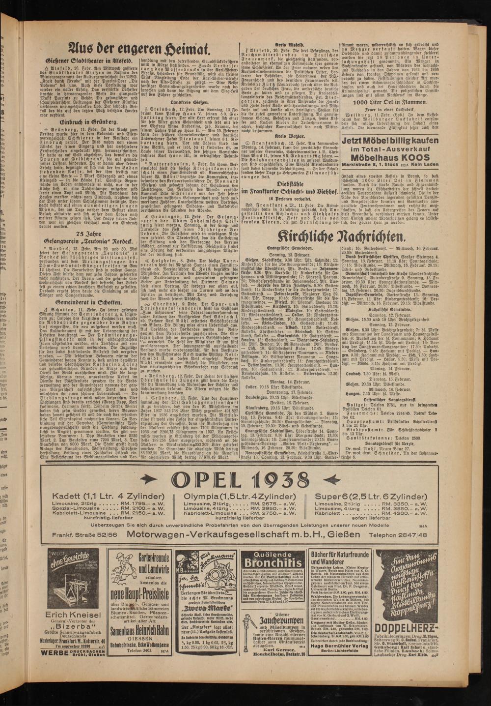 Gießen. 6.30 Uhr: Beichtgelegenheit; 7: hl. Messe und Kommunion der Jungfrauen und Hausangestellten; 8: Austeilung der hl. Kommunion; 9: Hochamt mit Predigt; 1,1.15: hl. Messe mit Predigt; 16: Vortrag der Jungfrauen-Kongregation; 17.30: Andacht. — Grünberg. 9.45: Hochamt mit Predigt. — Hungen. 9.30: Hochamt mit Predigt. — Lich. 7.30: Hochamt mit Predigt. — Lollar. 9.30: Messe mit Predigt. — TUdda. 8.15: Hochamt mit Predigt.
