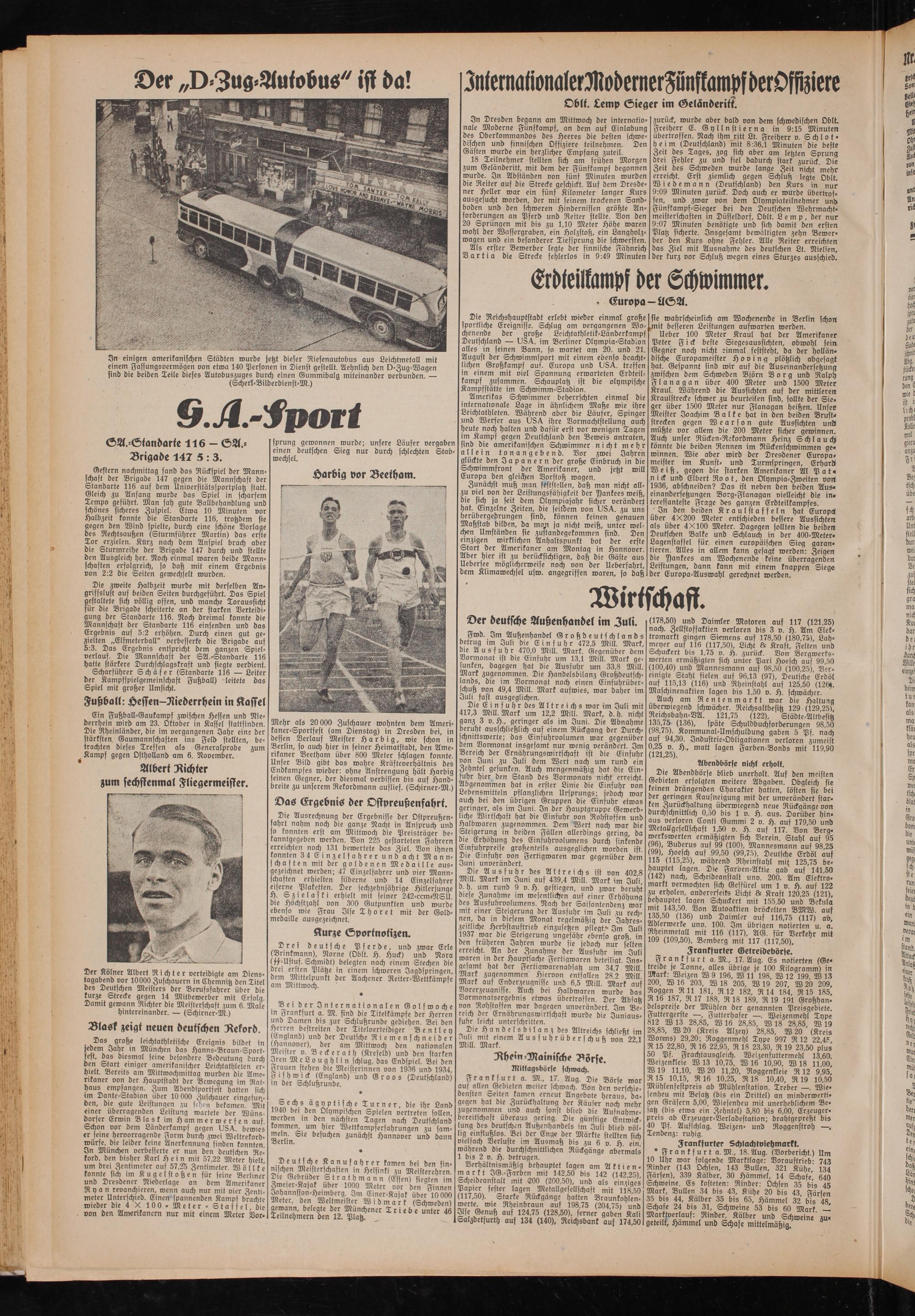 In Dresden begann am Mittwoch der internationale Moderne Fünfkampf, an dem auf Einladung des Oberkommandos des Heeres die besten schwedischen und finnischen Offiziere teilnehmen. Den Gästen wurde ein herzlicher Empfang zuteil.