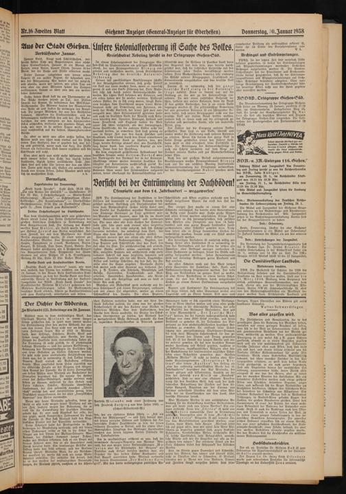 nr.16 Zweites Blatt Giehener Anzeiger (General-Anzeiger für Oberhellen)Donnerstag, w.Zanuar 1938