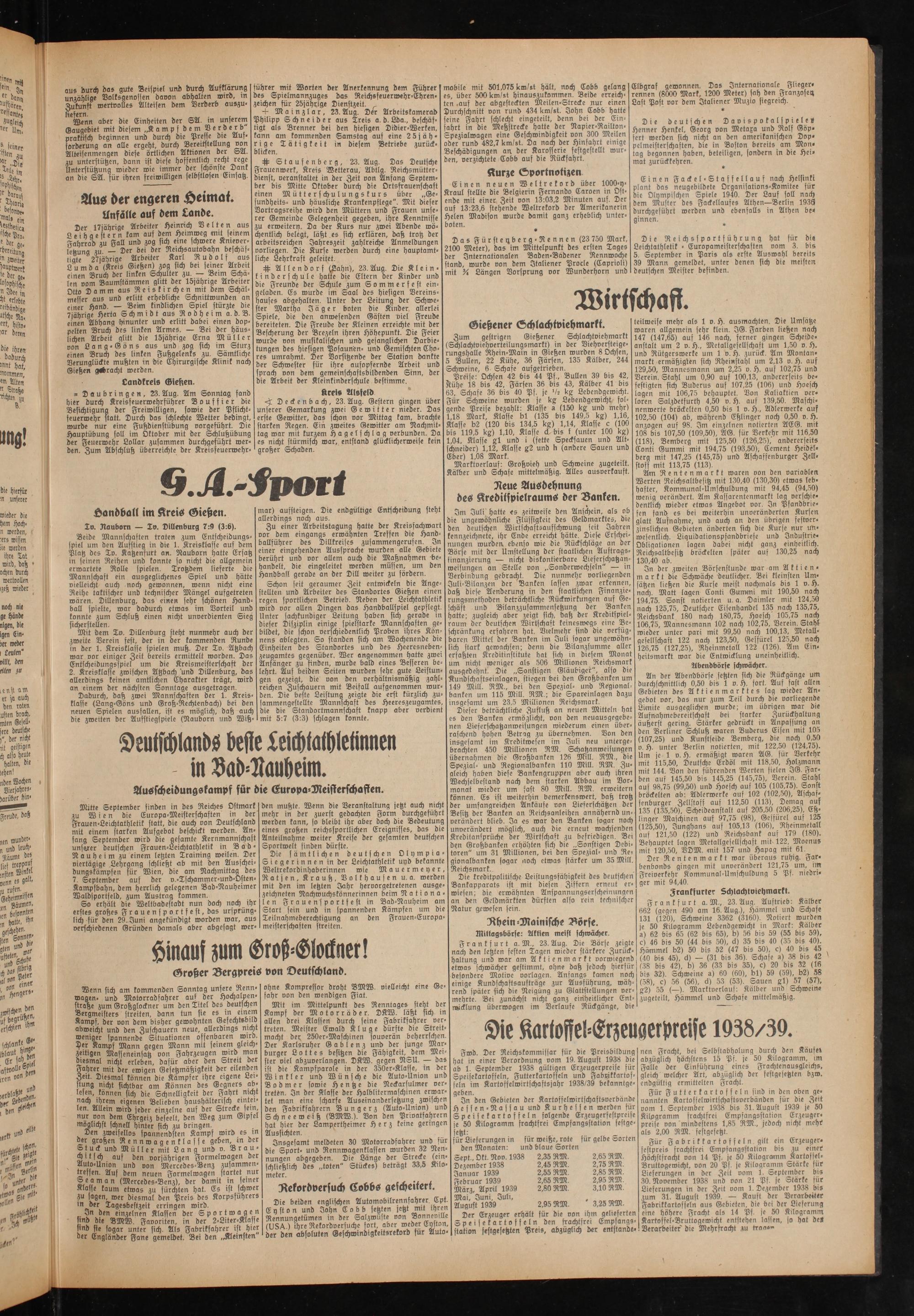 Mitte September finden in des Reiches Ostmark zu Wien die Europa-Meisterschaften in der Frauen-Leichtathletik statt, die auch von Deutschland mit einem starken Aufgebot beschickt werden. Anfang September wird die gesamte Kernmannschaft unserer deutschen Frauen-Leichtathletik in Bad- Nauheim zu einem letzten Training weilen. Der viertägige.Lehrgang schließt ab mit den Ausscheidungskämpfen für Wien, die am Nachmittag des 7. September auf der v.-Tschammer-und-Osten- Kampfbahn, dem herrlich gelegenen Bad-Nauheimer Waldsportfeld, zum Austrag kommen.