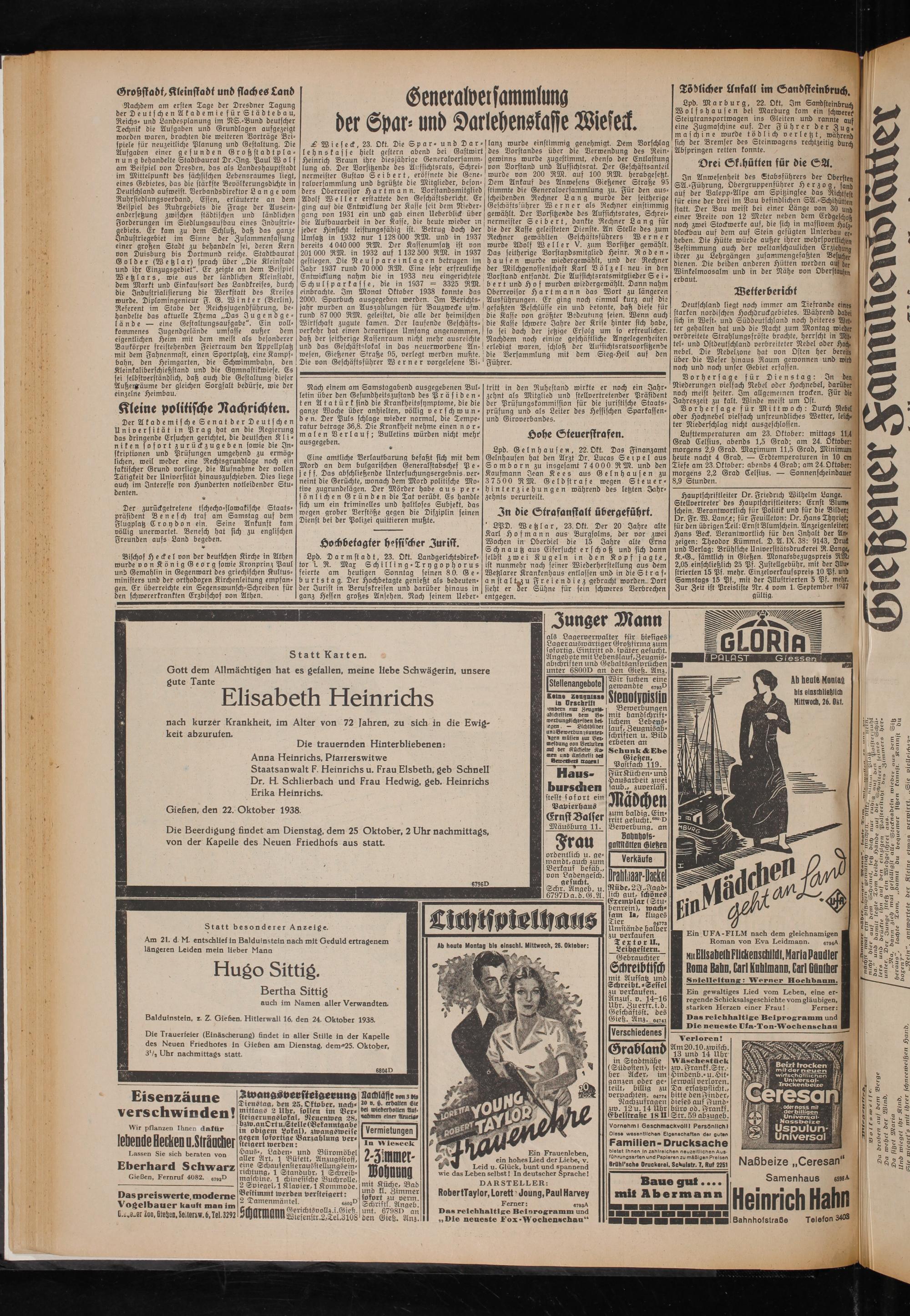 Gießen, den 22. Oktober 1938.