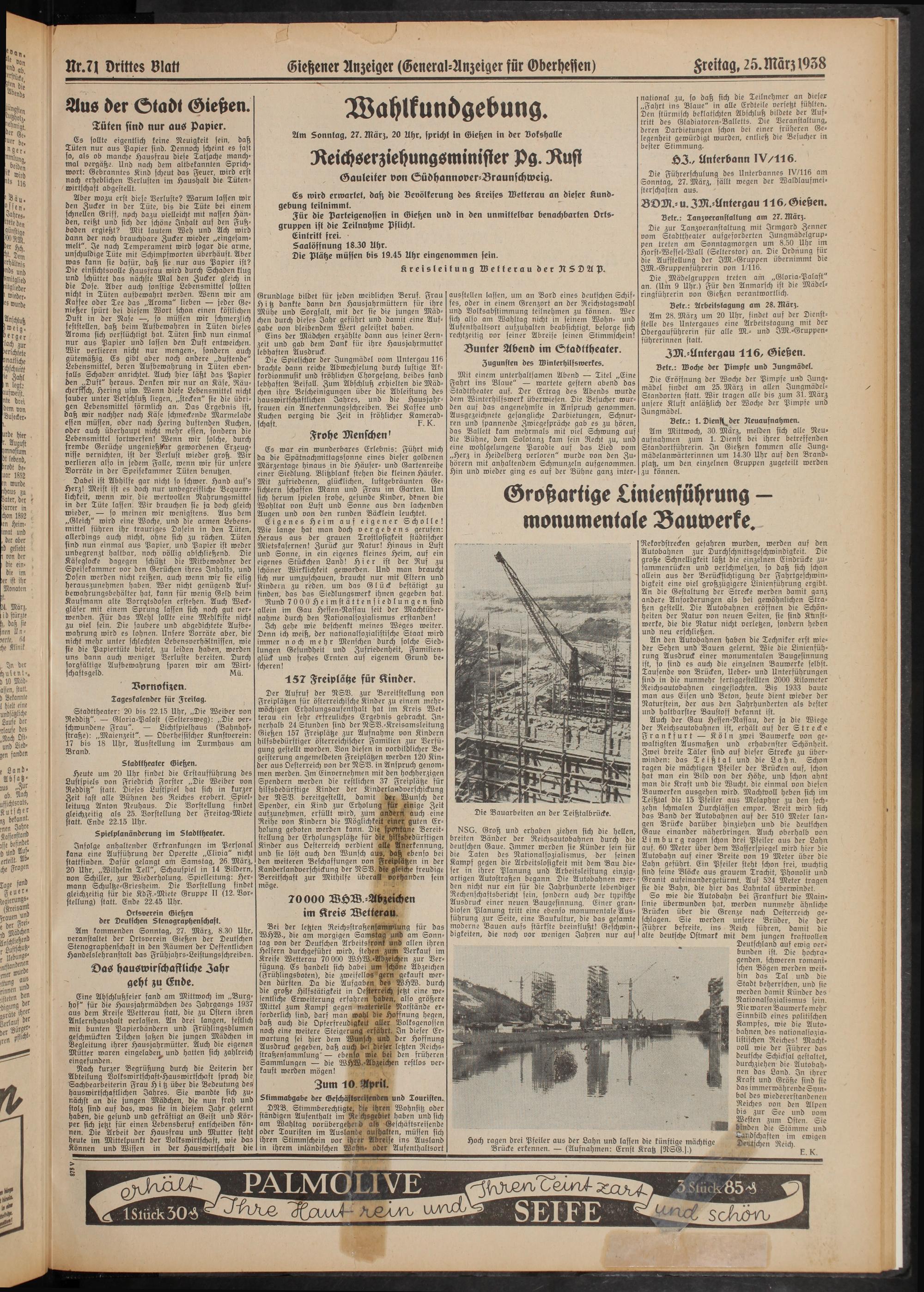 Für die Parteigenossen in Gießen und in den unmittelbar benachbarten Ortsgruppen ist die Teilnahme Pflicht.