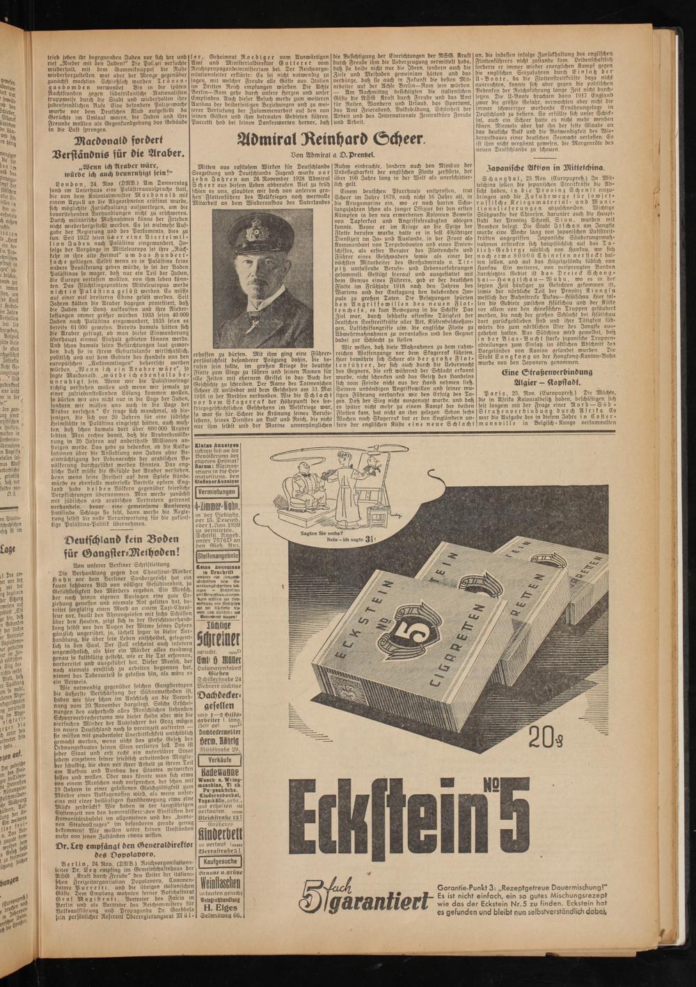 Wie notwendig gegenüber solchen Gangstertypen die äußerste Verschärfung der Suhnernethoden ist, haben mir hier schon im Anschluß an die Verordnung vorn 20. November dargelegt Solche Erscheinungen des außerhalb alles Menschlichen stehenden Schwerverbrechertums wie dieser Hahn ober wie die vierfachen Mörber ber Autofahrer bei Graz mögen im neuen Deutschlanb noch fo vereinzelt oustreten sie müssen mit gnabenlofer Unerbittlichkeit un schad Ich gemacht werden, wenn nicht bas große Gesetz des Orbnungsstaates seinen Sinn verlieren soll. Das ijt jeher Staat unb erst recht ein autoritärer otaat jebem einzelnen feiner srieblich arbeitenben Mitglieder fchulbig, die eben mit ihrer Arbeit zu ihrem Teil am Aufbau unb Ausbau bes Staates Mitwirken fallen unb wollen. Ober was könnte man sich etwa von einem Menschen noch versprechen, ber schon mit 19 Jahren in einer gelassenen Gleichgültigkeit zum Mörber eines Volksgenossen wirb, als wenn unsereins mit einer beiläufigen Hanbbewegung etwa eine Mücke zerbrückt? Wir haben in der langjährigen Systemzeit von ben bemoralifierr.oen Einflüssen ber Humanitätsbuselei im allgemeinen unb bes „humanen Strafvollzuges" im befonberen gerabe genug bekommen! Wir wollen unter keinen Umftanben mehr von jenen Zuständen etwas wissen.