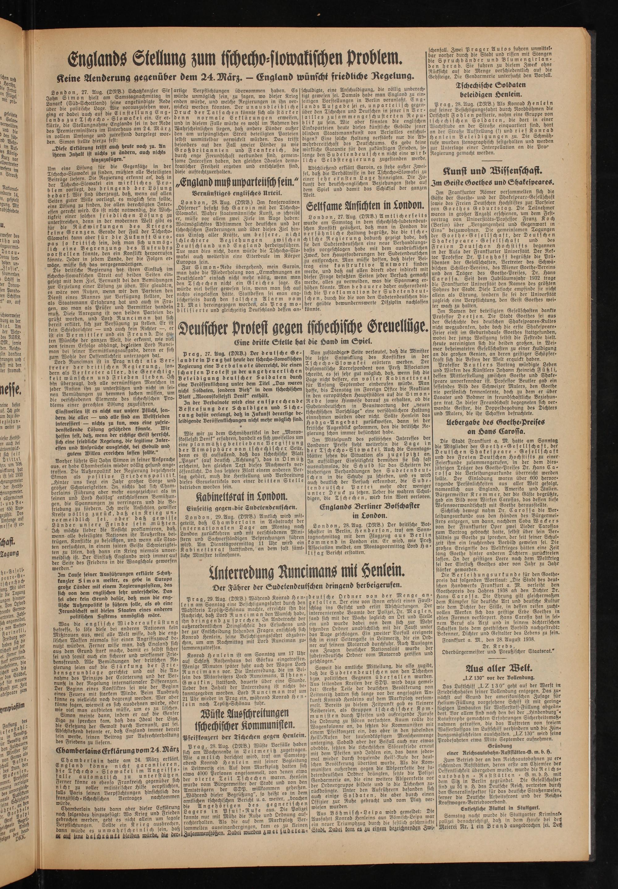 Abschließend erklärt Garvin, es stehe außer Zweifel, daß die Verhältnisse in der Tschecho-Slowakei zu einer sehr ernften Lage hinneigten. Die Zukunft der deutsch-englischen Beziehungen stehe auf dem Spiel und damit das Schicksal der ganzen Welt.