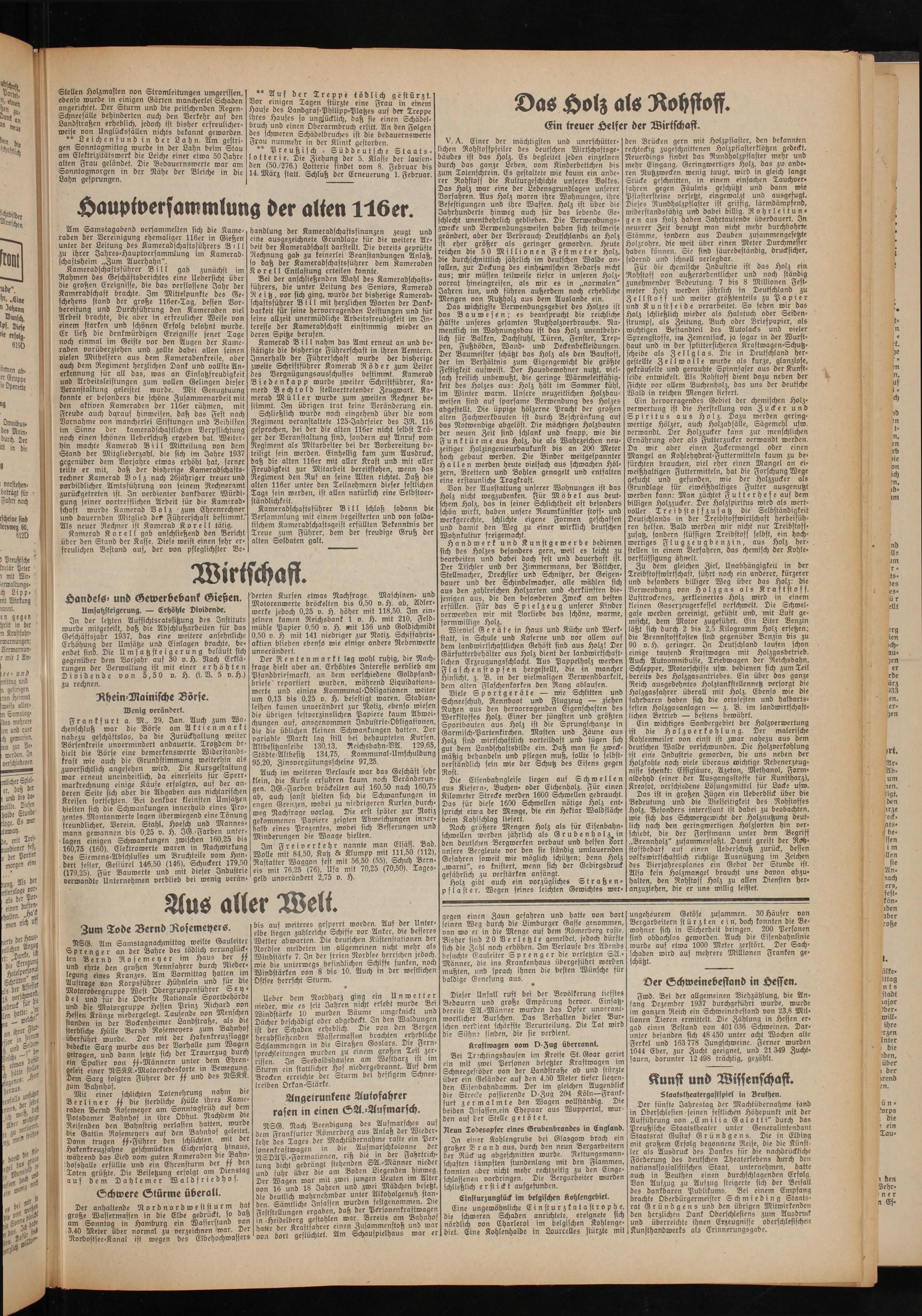 Am Samstagabend versammelten sich die Kameraden der Vereinigung ehemaliger 116er in Gieße« unter der Leitung des Kameradschaftsführers Bill zu ihrer Jahres-Hauptversammlung im Kameradschaftsheim „Zum Auerhahn".