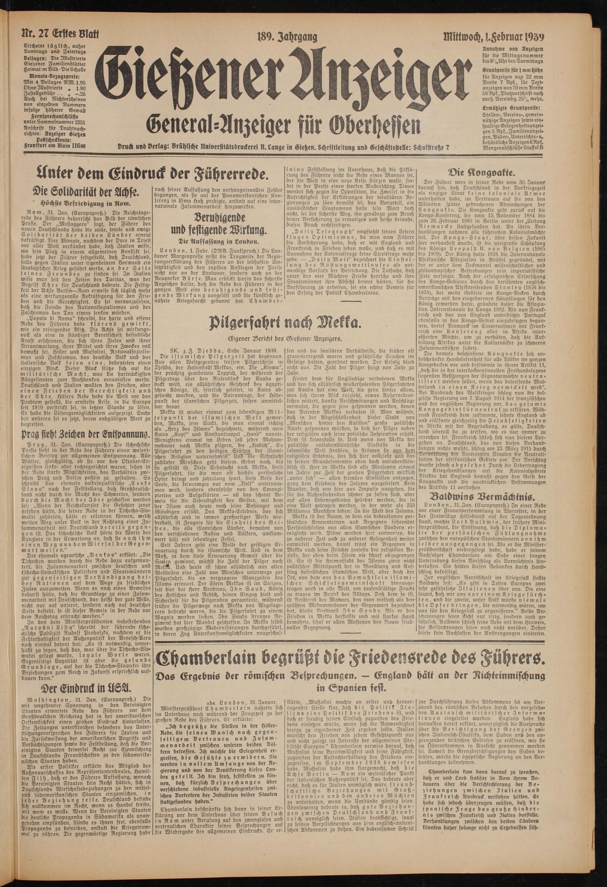 Erscheint täglich, außer Sonntags und Feiertags Beilagen: Die Illustrierte Gießener Familienblätter Heimat im Bild ■ Die Scholle