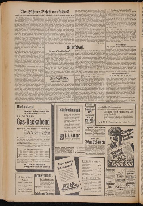 Einschreibegebühr nur Reichsmark 0.50 je Kursus. Anmeldungen: Stadtwerke Gießen, Abt Gaswerk, Gartenstraße 3 1, Ruf 2058.