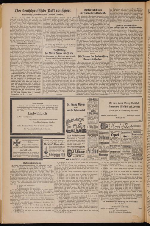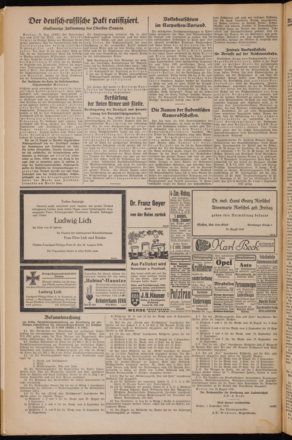 Gießen (Landgraf-Philipp-Platz 8), den 31. August 1939.