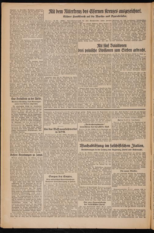 ner Truppe nach Lowicz hinein, wo sein Ueberfall eine tolle Panik auslöste. Auf dem Bahnhof wurden die Besatzungen mehrerer feindlicher Truppentransporte regelrecht „verhaftet". Der schönste Erfolg dieses Ueberfalls aber war die