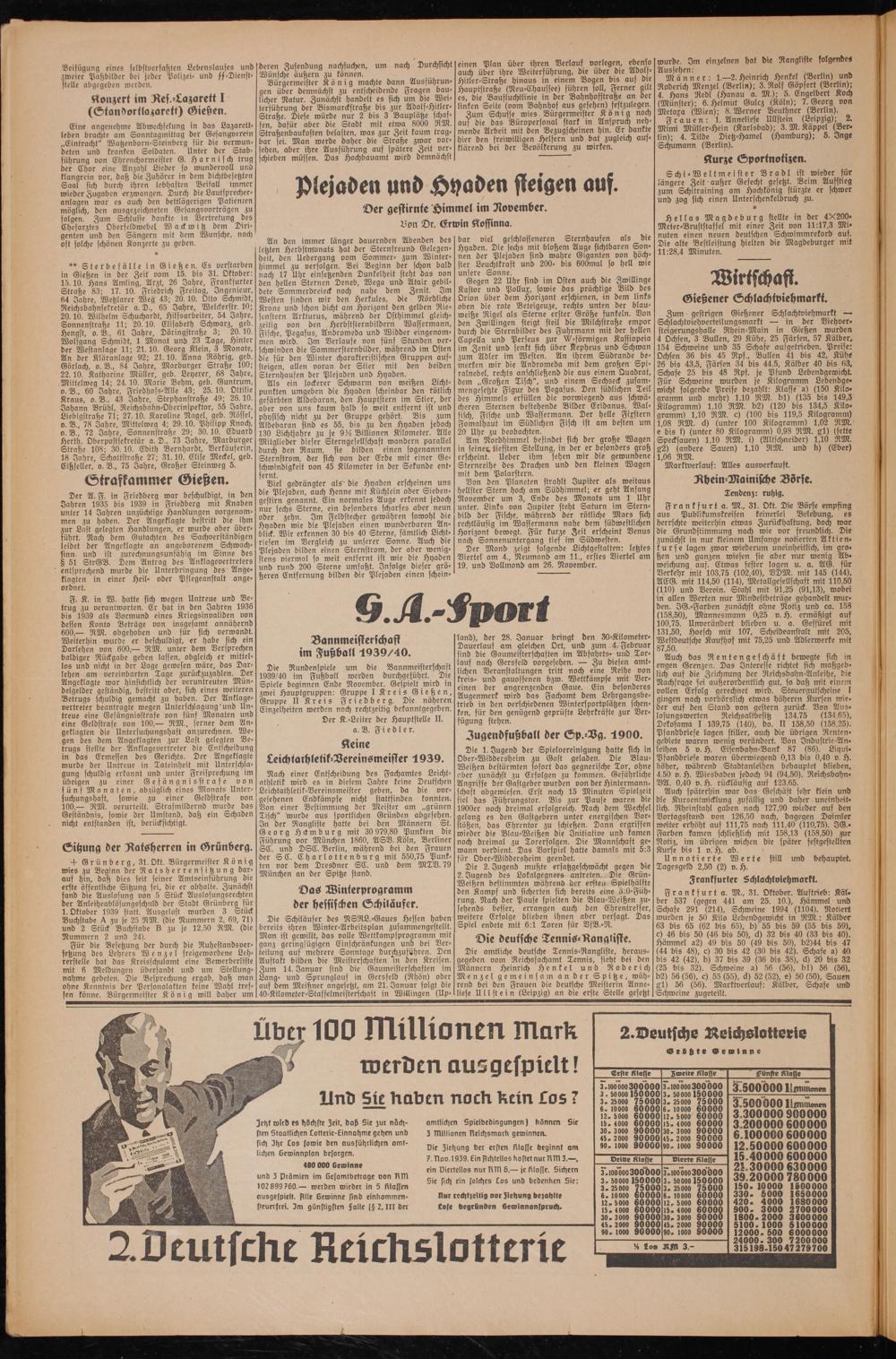 Die Rundenspiele um die Bannmeisterschaft 1939/40 im Fußball werden durchgeführt. Die Spiele beginnen Ende November. Gespielt wird in zwei Hauptgruppen: Gruppe I Kreis Gießen, Gruppe II Kreis Friedberg. Die näheren Einzelheiten werden noch rechtzeitig bekanntgegeben.
