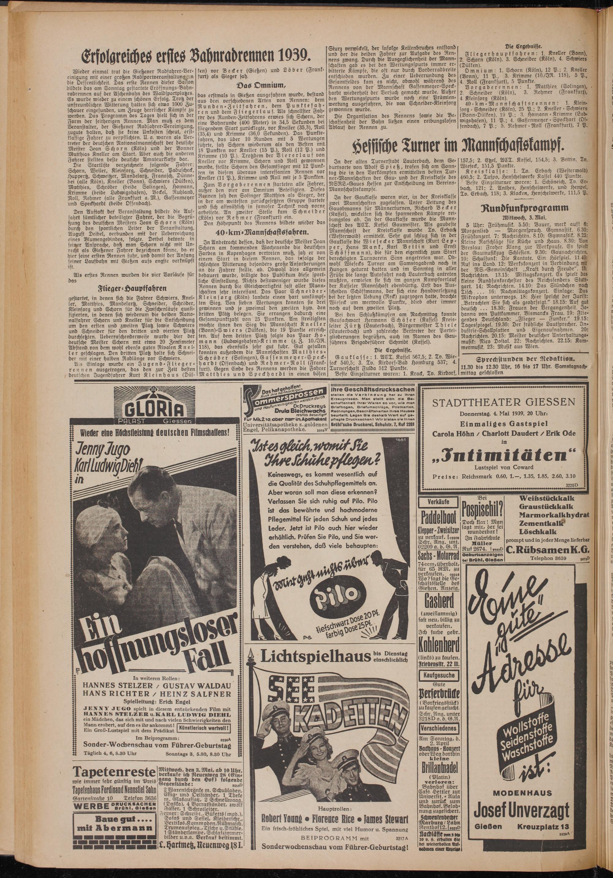 Donnerstag, 4. Mai 1939, 20 Uhr: