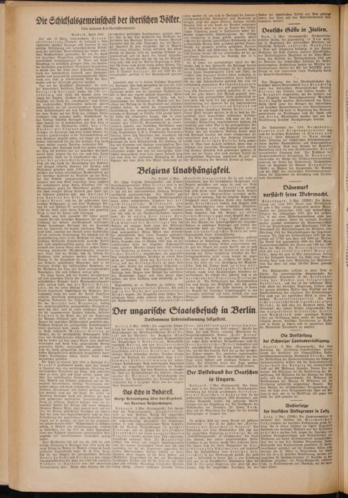 Budapest, 2. Mai (Europapreß). Am Sonntag fand in der Gemeinde Ciko die Gründungsversammlung des kürzlich genehmigten Volksbundes der Deutschen in Ungarn statt. In der größtenteils deutschsprachigen 1800 Einwohner zählenden Gemeinde fanden sich zahlreiche Abordnungen aus der Umgebung ein. Der Vorsitzende des Volksbundes der Deutschen, Dr. Franz Basch, wies auf die Bedeutung des Tages für die deutsche Volksgruppe in Ungarn hin.