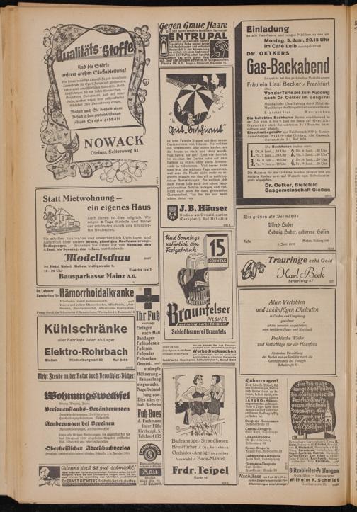 Einschreibegebühr nur Reichsmark 0.50 je Kursus. Anmeldungen: Stadtwerke Gießen, Abt Gaswerk.