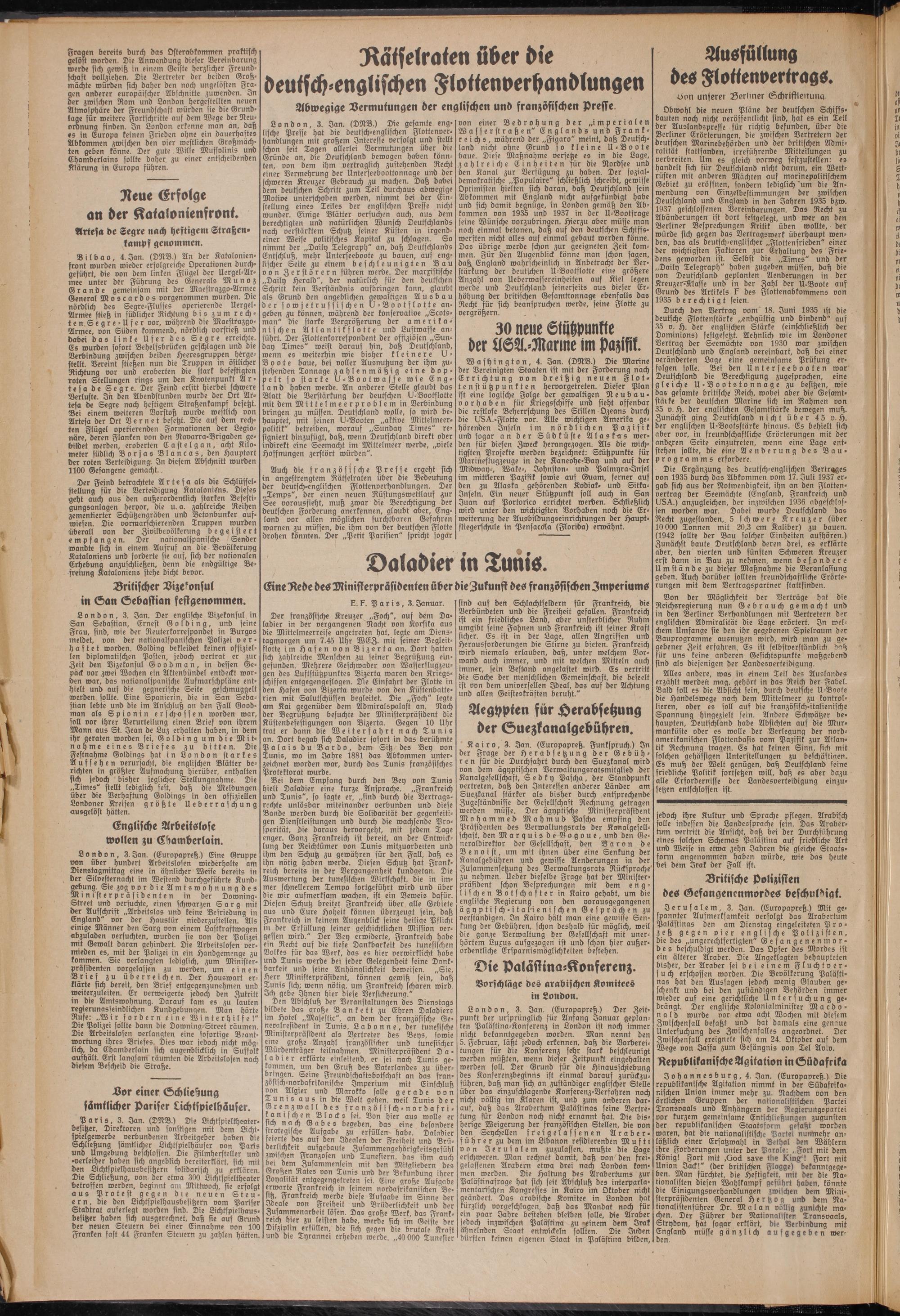 Fragen bereits durch das Dfterabfommen praktisch gelöst worden. Die Anwendung dieser Vereinbarung werde sich aewiß in einem Geiste herzlicher Freundschaft vollziehen. Die Vertreter der beiden Großmächte würden sich daher den noch ungelösten Fragen anderer europäischer Abschnitte zuwenden. In der zwischen Rom und London hergestellten neuen Atmosphäre der Freundschaft würden sie die Grundlage für weitere Fortschritte auf dem Wege der Neuordnung finden. In London erkenne man an, daß es in Europa keinen Frieden ohne ein dauerhaftes Abkommen zwischen den vier westlichen Großmächten geben könne. Der gute Wille Mussolinis und Chamberlains sollte daher zu einer entscheidenden Klärung in Europa führen.