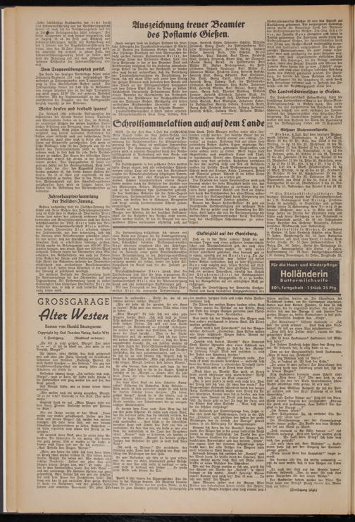 Das Ergebnis der neuen Sammelaktion wird auch diesmal wieder die beste Bürgschaft dafür fein, das Schöne mit dem Nützlichen zu verbinden. Auf der einen Seite gewinnen Gehöft und Dorf on Schönheit durch das Verschwinden des alten Eisens, ander- feite wird der Volkswirtschaft durch Einsparung von Millionen Reichsmark Devisen geholfen.