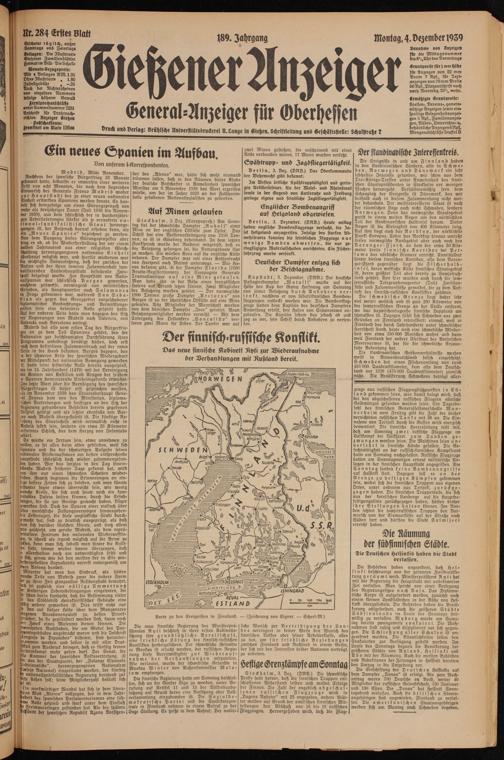 zeuge aus russischen Flugzeugstützpunkten in Estland gekommen seien, was damit belegt wird, daß bei den abgeschossenen russischen Fliegern estnische Geldmünzen gefunden worden seien. Ein Tagesbefehl des finnischen Generalfeldmarschalls Man- nerheim vom Freitag gibt die Zahl der bisher vernichteten russischen Tanks mit 36 an. Die Einnahme von Terijoki durch die Russen wird energisch dementiert. Die finnische Heeresleitung teilt mit,