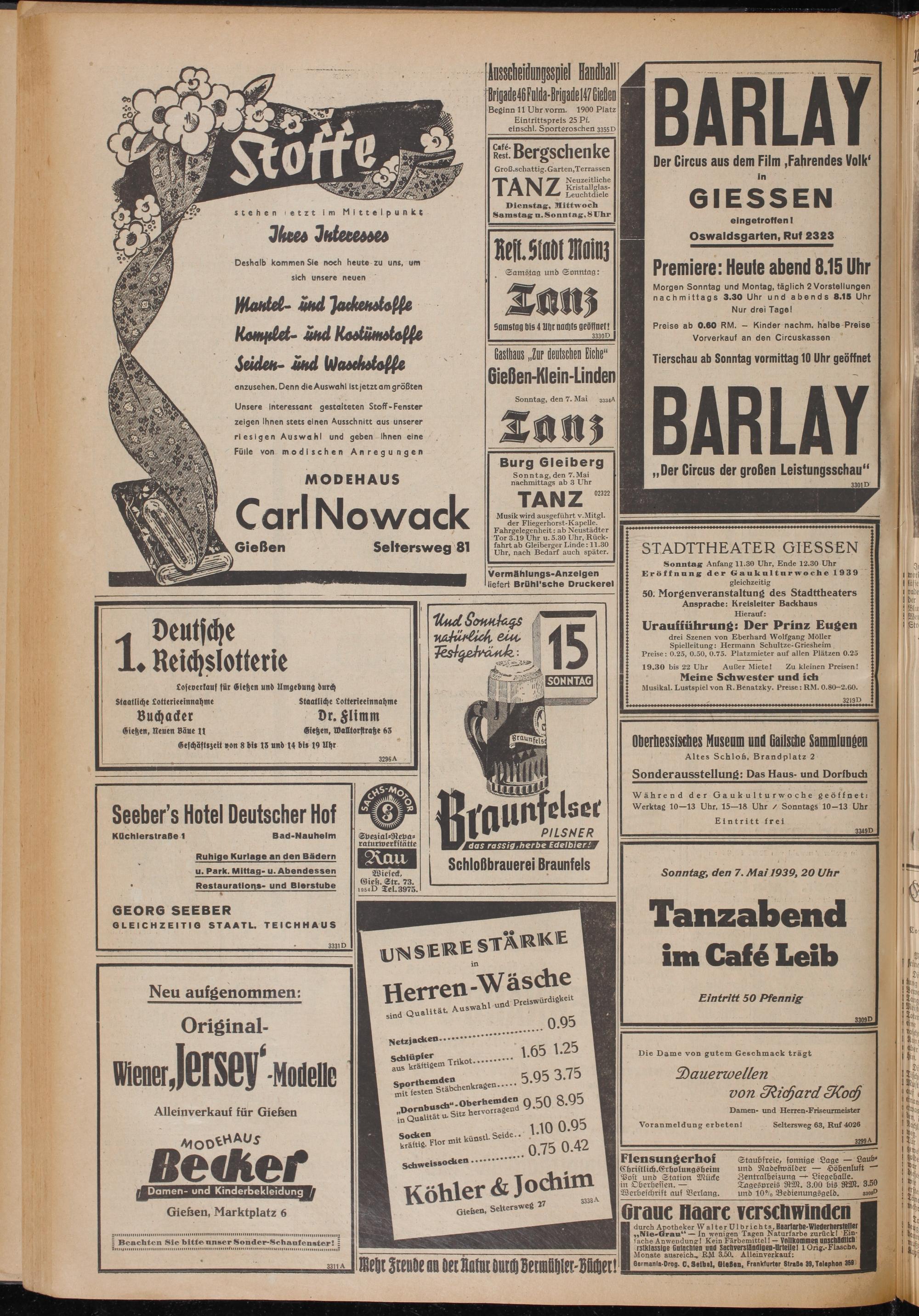 Sonntag» den 7. Mai 1939, 20 Uhr