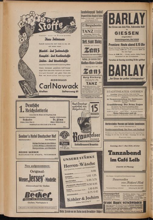 I durch Apotheker Walterülbrichts, Haart arhß-WIßdßrtlßrstßllßr „Nie-Grau“ — In wenigen Tagen Naturfarbe zurück! Einfache Anwendung! Kein Färbemittel! — Vollkommen unschädlich rstklassioß Gutachtnn und Sachvßrstandigßn-Ilrtßile 1 1 Orig.-Flasche, Monate auareich., RM 3.50. Alleinverkauf: 6ermanla-Drog. C. Seibel, Gießen, Frankfurter Straße 39,Telephon 359