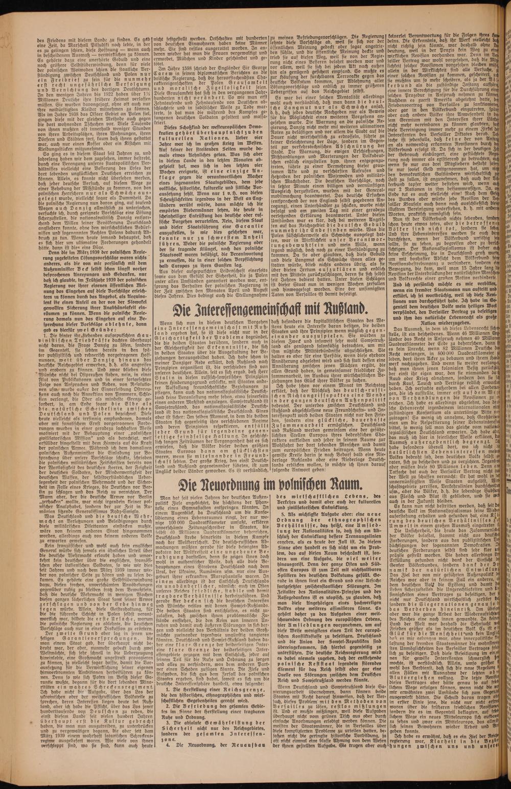 5. Als wichtigste Aufgabe aber: eine neue Ordnung der ethnographischen Verhältnisse, das heißt, eine Umsiedlung der Rationalitäten so, daß sich am Abschluß der Entwicklung bessere Trennungslinien ergeben, als es heute der Fall ist. In diesem Sinne aber handelt es sich nicht um ein Problem, das auf diesen Raum beschränkt ist, sondern um eine Aufgabe, die viel weiter hinausgreift. Denn der ganze Osten und Süd- osten Europas ist zum Teil mit nichthaltbaren Splittern des deutschen Volkstums gefüllt. Gerade in ihnen liegt ein Grund und eine Ursache fortgesetzter zwischenstaatlicher Störungen. Im Zeitalter des Rationalitäten-Prinzips und des Rassegedankens ist es utopisch, zu glauben, daß man diese Angehörigen eines hochwertigen Volkes ohne weiteres assimilieren könne. Ls gehört daher zu den Aufgaben einer weitschauenden Ordnung des europäischen Lebens, hier Umsiedlungen vorzunehmen, um auf diese Weise wenigstens einen Teil der europäischen Konfliktsstoffe zu beseitigen. Deutschland und die Union der Sowjet-Republiken sind übereingekommen, sich hierbei gegenseitig zu unterstützen. Die deutsche Reichsregierung wird es dabei niemals zugeben, daß der entstehende polnische Reststaat irgendein störendes Element für das Reich selbst ober gar eine Quelle von Störungen zwischen dem Deutschen Reich und Sowjetruhland werden könnte.