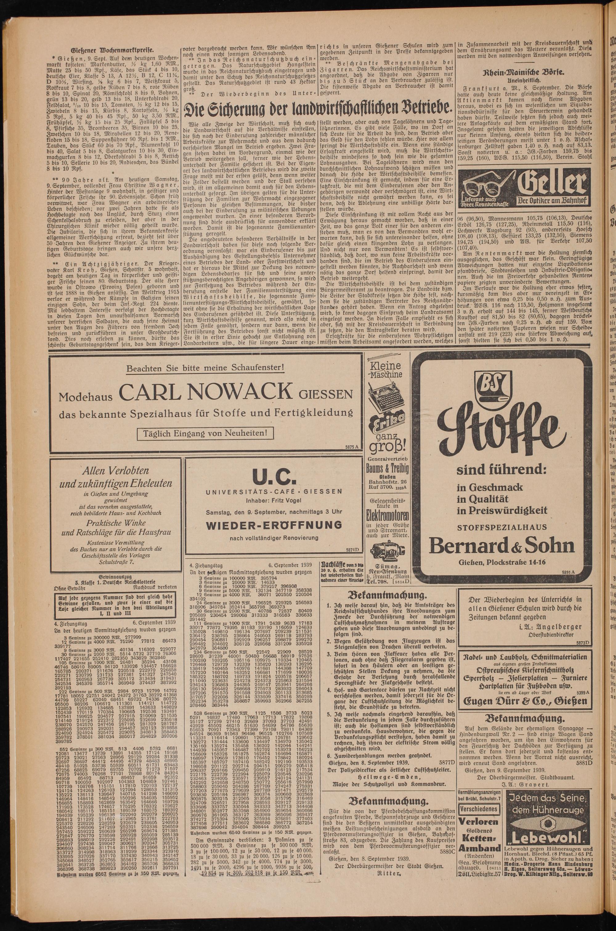 Gießen, den 8. September 1939.