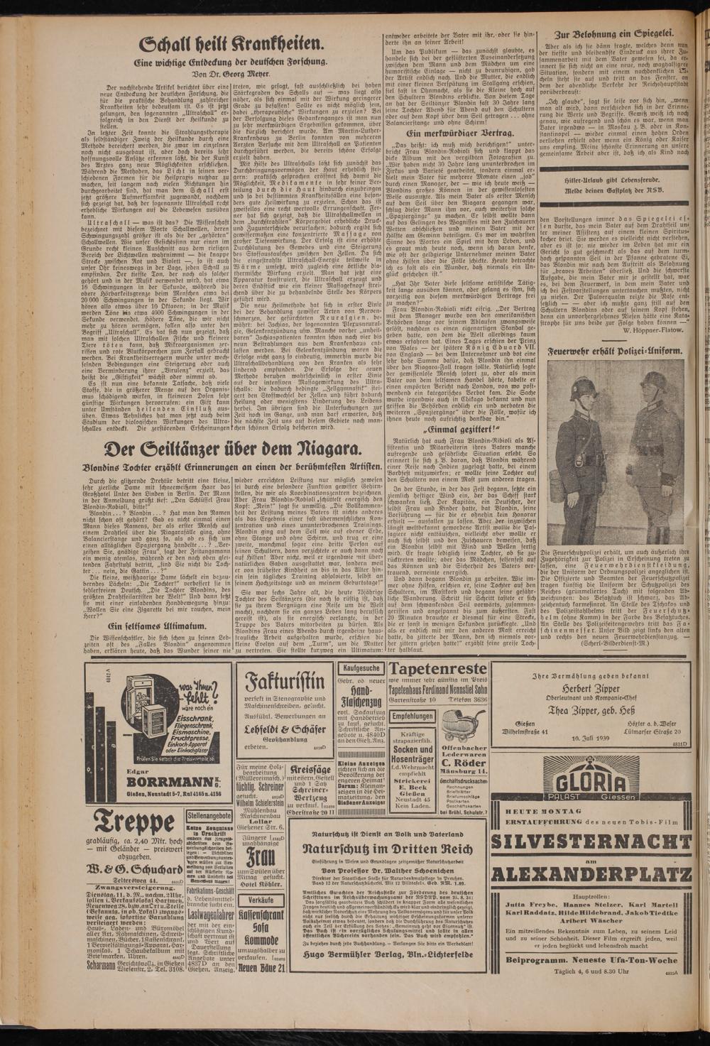 Der nachstehende Artikel berichtet über eine neue Entdeckung der deutschen Forschung, die für die praktische Behandlung zahlreicher Krankheiten sehr bedeutsam ist. Es ist,jetzt gelungen, den sogenannten „Ultraschall" erfolgreich in den Dienst der Heilkunde zu stellen.