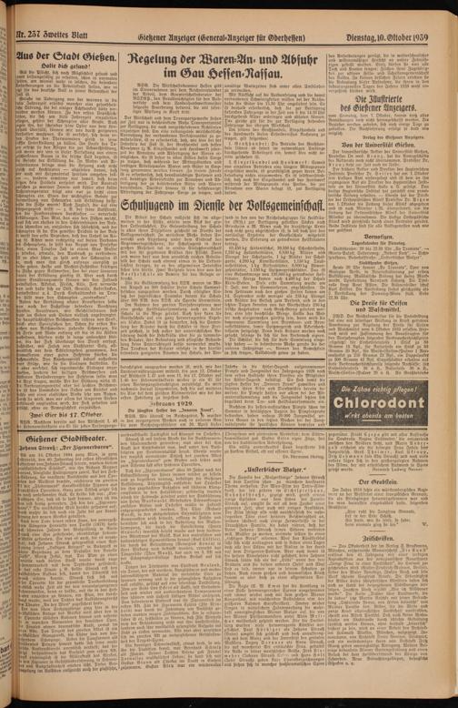 Dienstag, 10. Oktober 1939