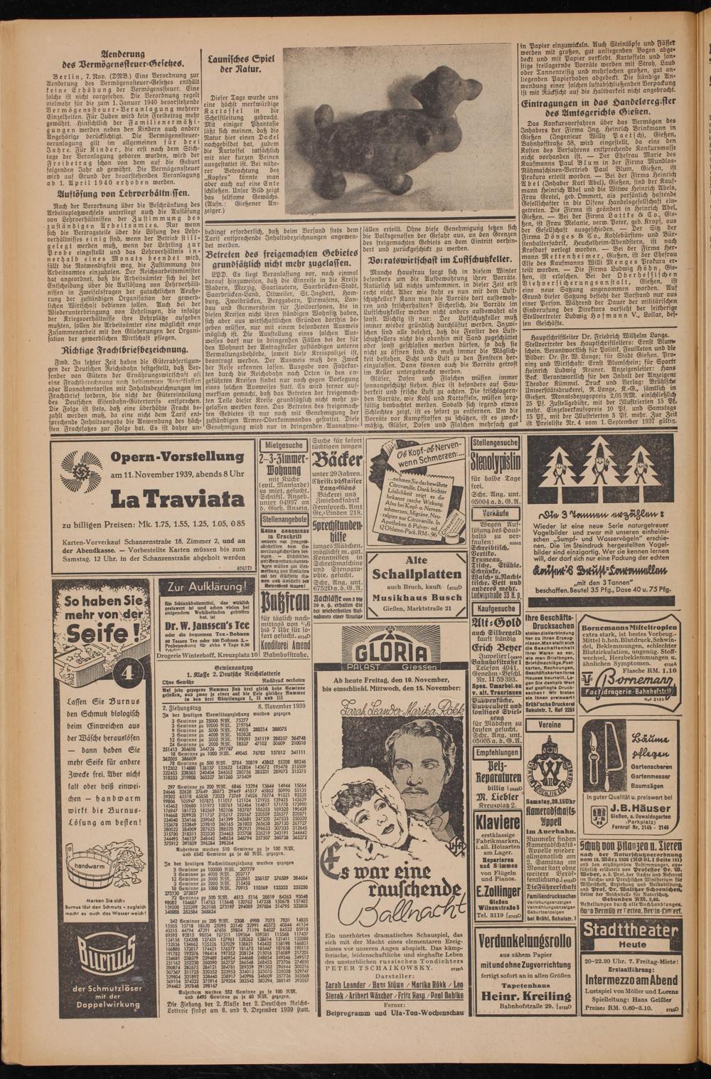 Hauptschriftleiter Dr. Friedrich Wilhelm Lange. Stellvertreter des Hauptschriftleiters: Ernst Blum- schein. Verantwortlich für Politik, Feuilleton und die Bilder- Dr. Fr. W. Lange: für Stadt Gießen, Provinz und Wirtschaft: Ernst Blumschein: für Sport: Heinrich Ludwig Neuner. Anzeigenleiter: Hans Beck. Verantwortlich für den Inhalt der Anzeigen: Theodor Kümmel. Druck und Verlag: Bruhlsche Universitätsdruckerei, R. Lange, K.-G., [äntütu) Gießen. Monatsbezugspreis 2,05 RM. einschließlich 25 Pf. Zustellgebühr, mit der Illustrierten 15 Pf. mehr. Einzelverkaufspreis 10 Pf. und Samstags 15 Pf., mit der Illustrierten 5 Pf. mehr. Zur Zelt ist Preisliste Nr. 4 vom 1. September 1937 gültig.