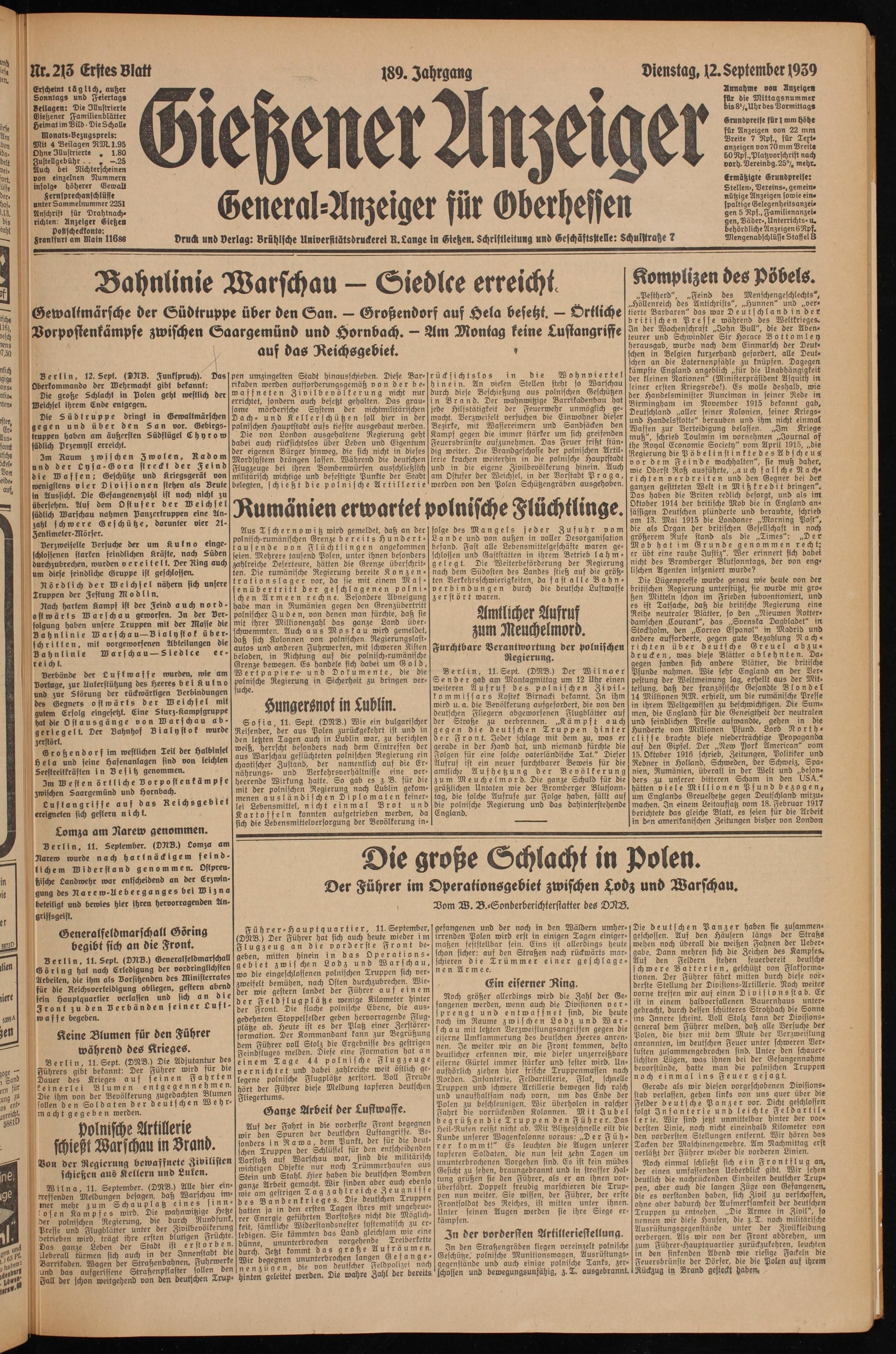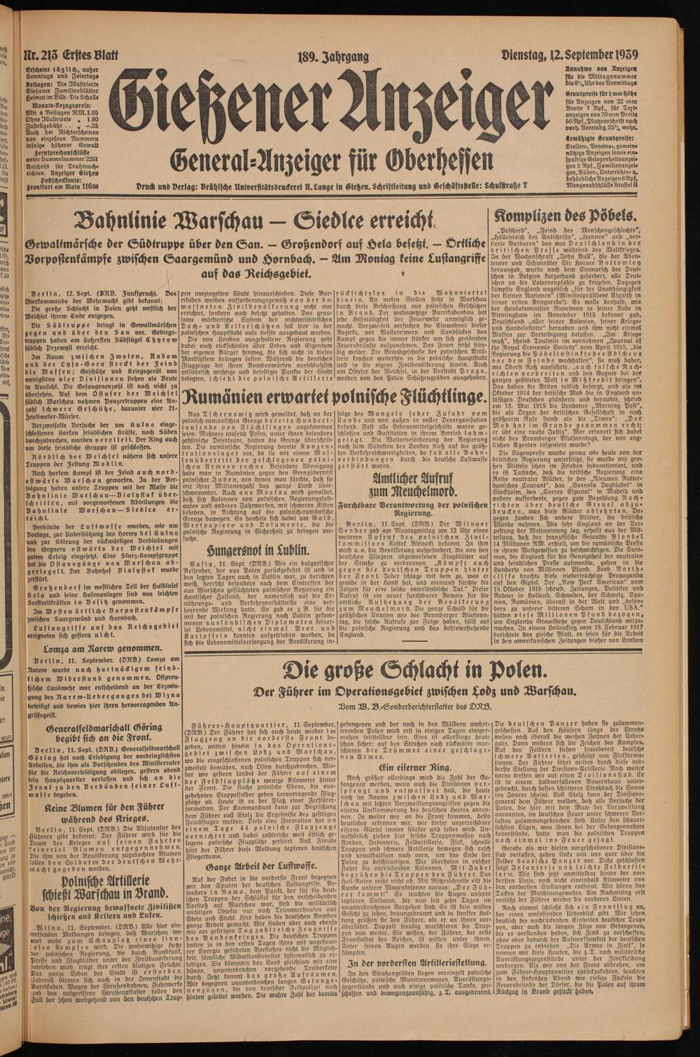 Dienstag, 12. September 1939