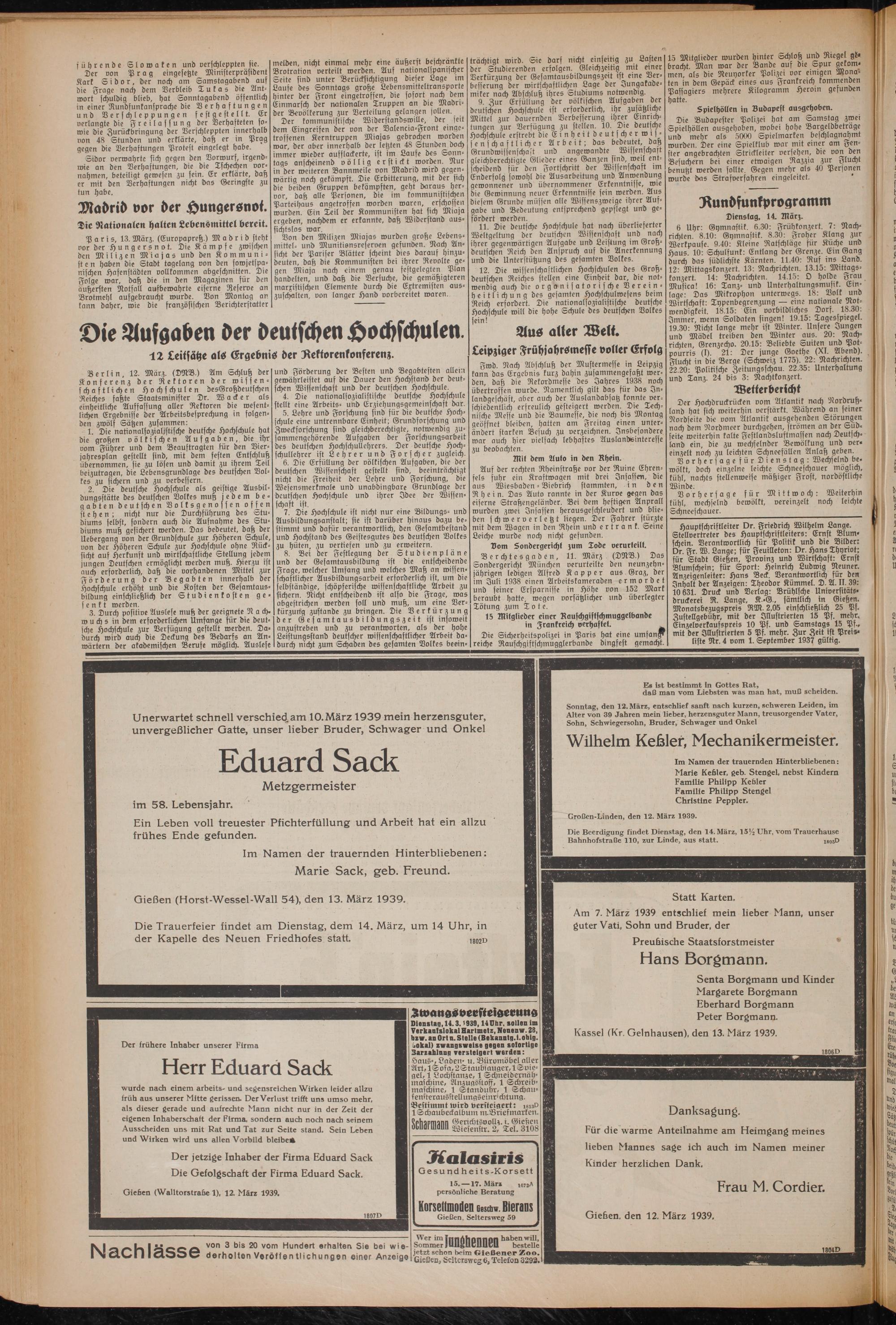 Gießen, den 12. März 1939.