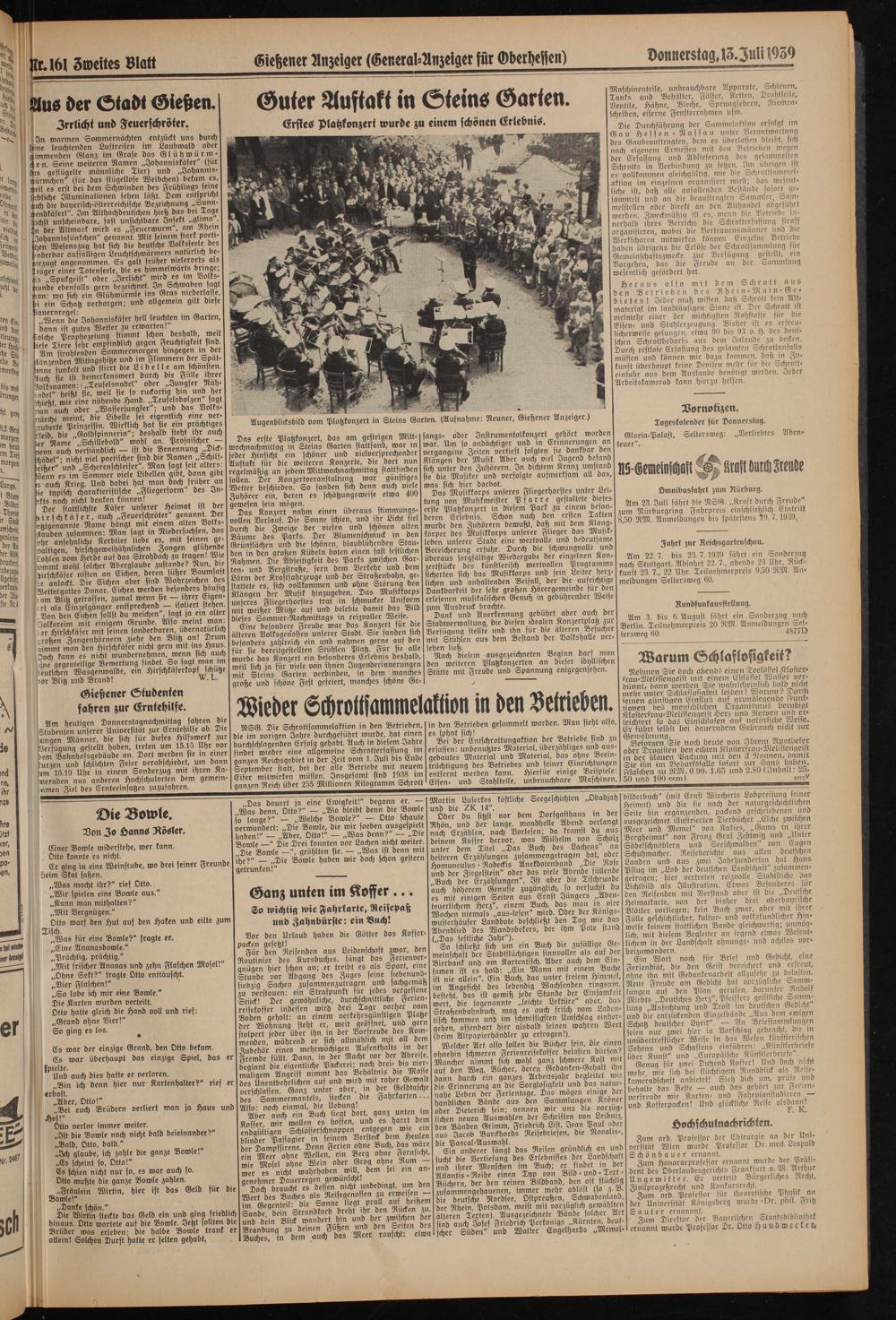 Das erste Platzkonzert, bas am gestrigen Mittwochnachmittag in Steins Garten ftattfanb, war in jeder Hinsicht ein schöner und vielversprechender Auftakt für die weiteren Konzerte, die dort nun regelmäßig an jedem Mittwochnachmittag ftattfinden sollen. Der Konzertveranstaltung war günstiges Wetter beschieden. So fanden sich denn auch viele Zuhörer ein, deren es schätzungsweise etwa 400 gewesen sein mögen.