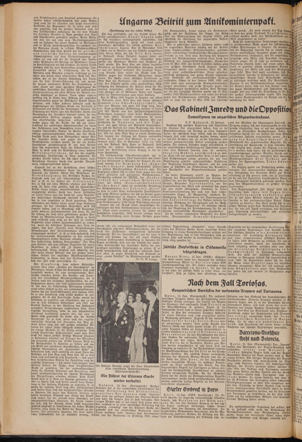Ungarn hat auf Grund feiner langjährigen Erfahrungen mit dem Bolschewismus seinerzeit als er- ter Staat einen numerus clausus für Juden an Hochschulen eingeführt. 1920 bereits erfolgte dann die Veröffentlichung eines strengen Gesetzes gegen