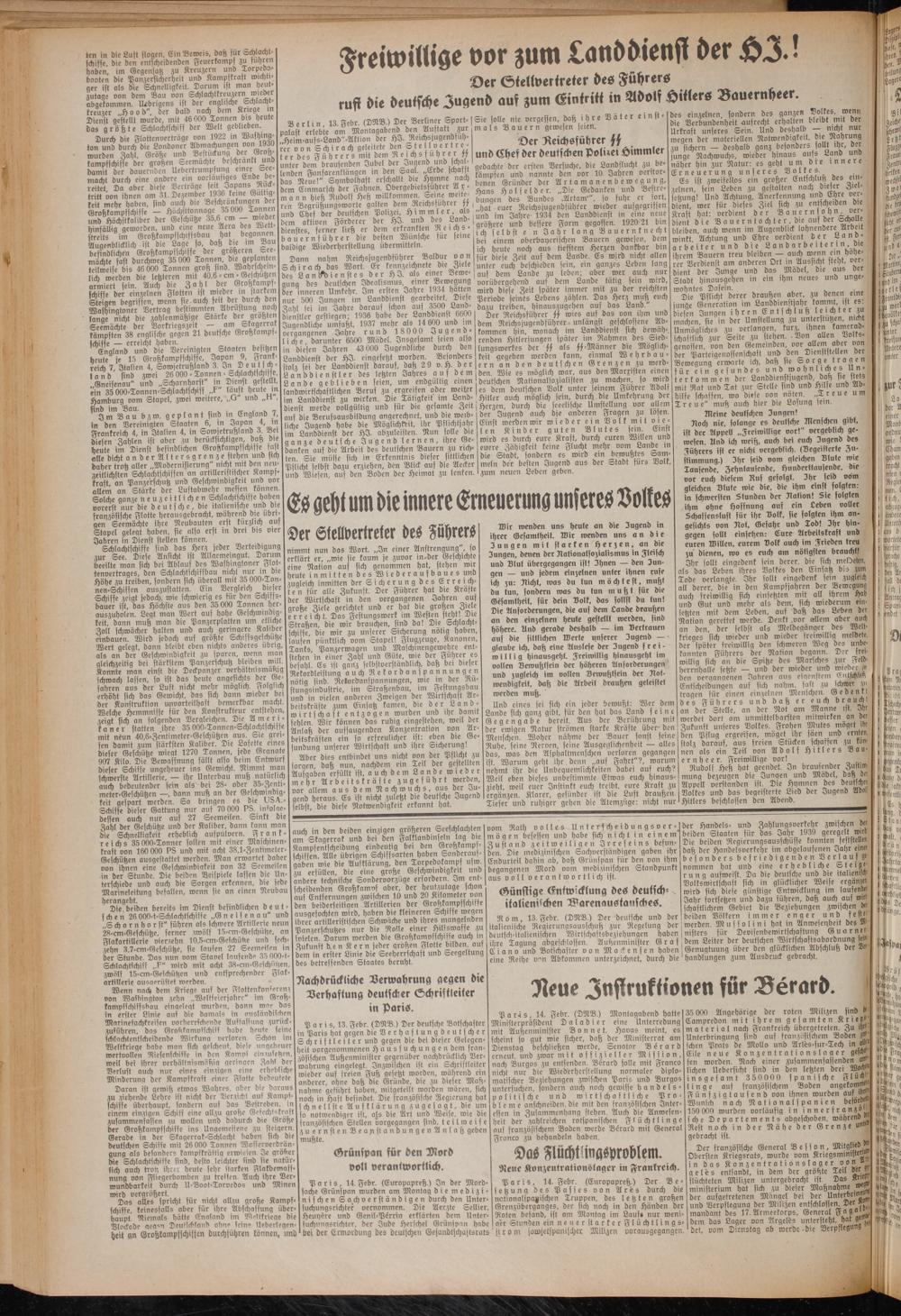 P a r i s, 13. Febr. (DNB.) Der deutsche Botschafter in Paris hat gegen die Verhaftung deutscher Schrif t 1 eiter und gegen die bei dieser Gelegenheit vorgenommenen Haussuchungen dem französischen Außenminister gegenüber nachdrücklich Verwahrung eingelegt. Inzwischen ist ein Schriftleiter wieder auf freien Fuß gesetzt worden, während ein anderer, ohne daß die Gründe, die zu dieser Maßnahme geführt haben, mitgeteilt worden wären, sich noch in Haft befindet. Die französische Regierung hat schnellste Ausklärung zugesagt, die um so notwendiger ist, ass die Art und Weise, wie die französischen Stellen vorgegangen sind, teilweise zu ernstenBea^standungenAnlaß geben mußte.