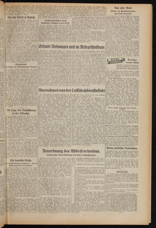 Stabschef Lutze ist in Begleitung vom General- stabschef ber faschistischen Miliz, General Russo, nach seiner Rückkehr aus Tripolis von Rom nach V e n e b i g abgeflogen unb wirb am Dienstag von dort aus im Flugzeug nach Berlin zurückkehren.