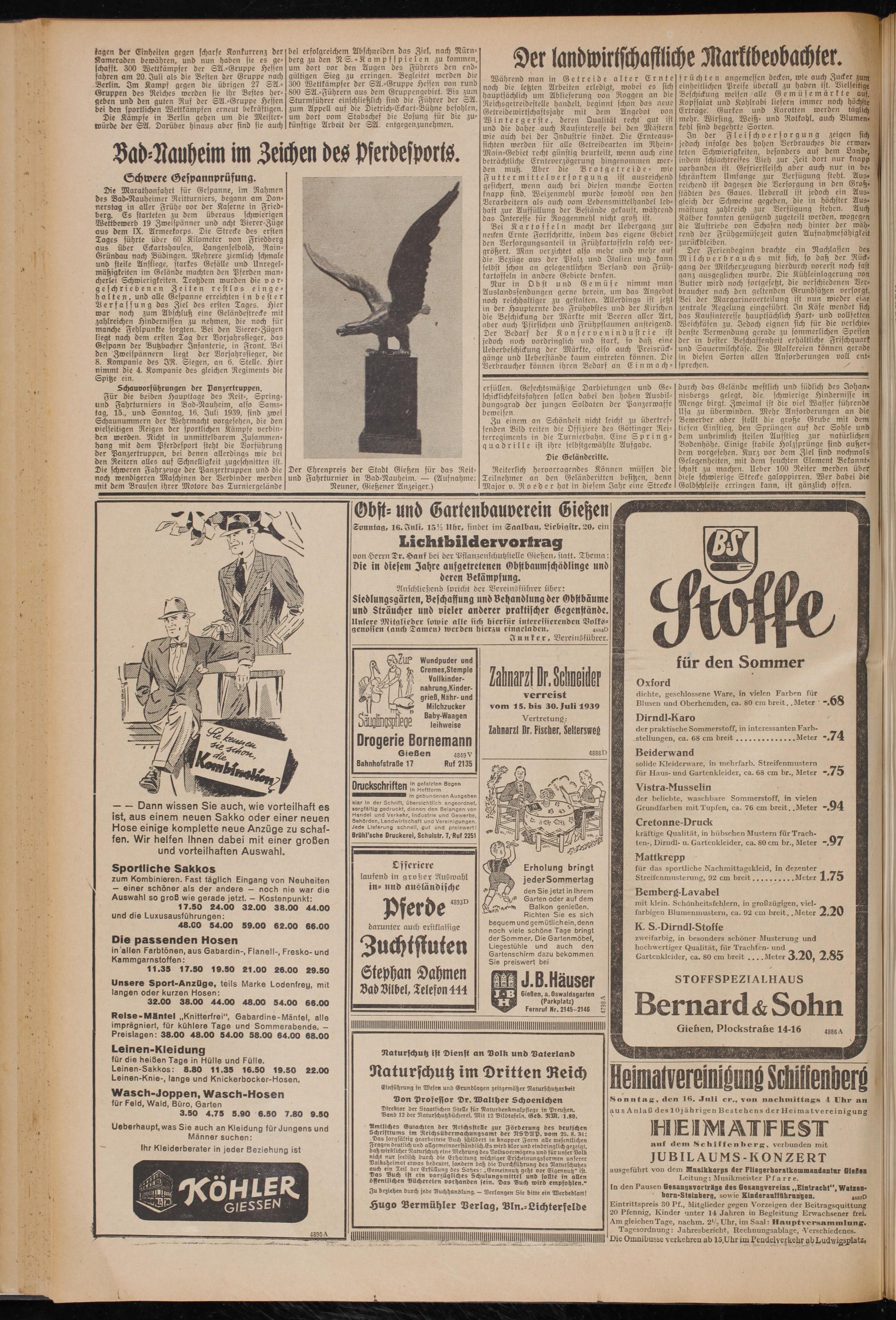Für die beiden Haupttage des Reit-, Springend Fahrturniers in Bad-Nauheim, also Samstag, 15., und Sonntag, 16. Juli 1939, sind zwei Schaunummern der Wehrmacht vorgesehen, die den vielseitigen Reigen der sportlichen Kämpfe verbinden werden. Nicht in unmittelbarem Zusammenhang mit dem Pferdesport steht die Vorführung der Panzertruppen, bei denen allerdings wie bei den Reitern alles auf Schnelligkeit zugeschnitten ist. Die schweren Fahrzeuge der Panzertruppen und die noch wendigeren Maschinen der Verbinder werden mit dem Brausen ihrer Motore das Turniergelände