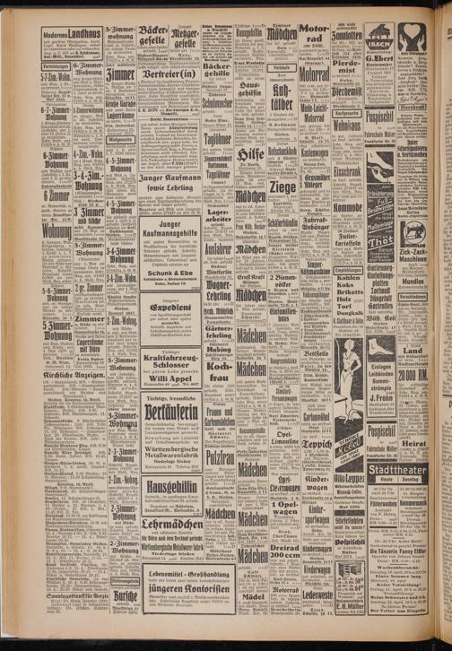 Schr. Ang. unt. 2766va. d.G.A. Zwei möblierte WM m. kleiner Küche u. Balkon an 1 od. 2 Personen abzugeben, oiois Klinrkstr. 22IL Grose Garage und zwei kleine Lagerräume zu verm. [2747V Chr. Jnderthal, Seltersweg 55, Fernruf 3973. | Mietgesuche | Postinspekt. sucht zum 1. 6. oder 1.7.1939 schöne 4-5-3immer-