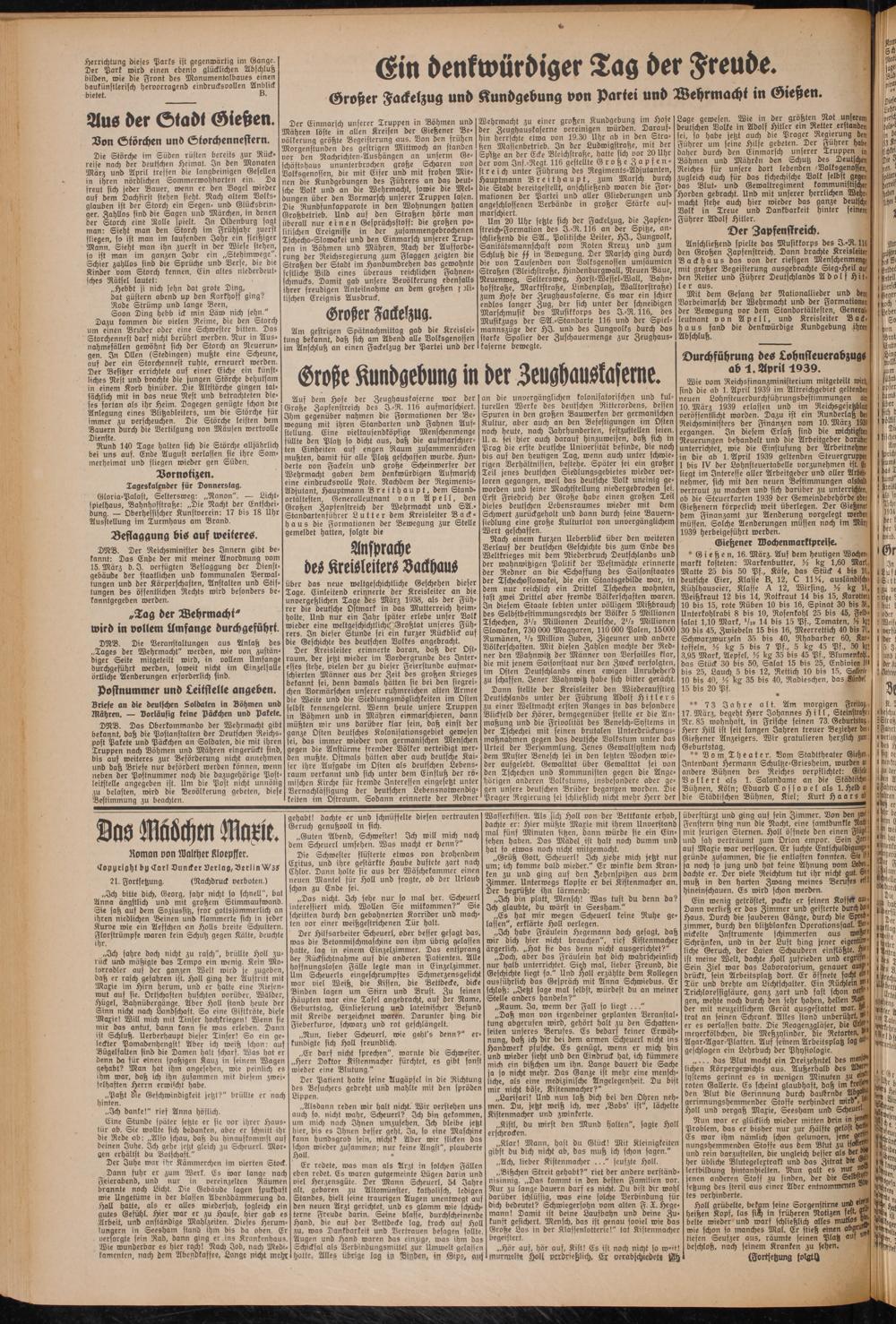 Mit dem Gesang der Nationallieder und dem Vorbeimarsch der Wehrmacht und der Formationen der Bewegung vor dem Standortältesten, General, leutnant von Apell, und Kreisleiter Back, haus fand die denkwürdige Kundgebung ihm Abschluß.
