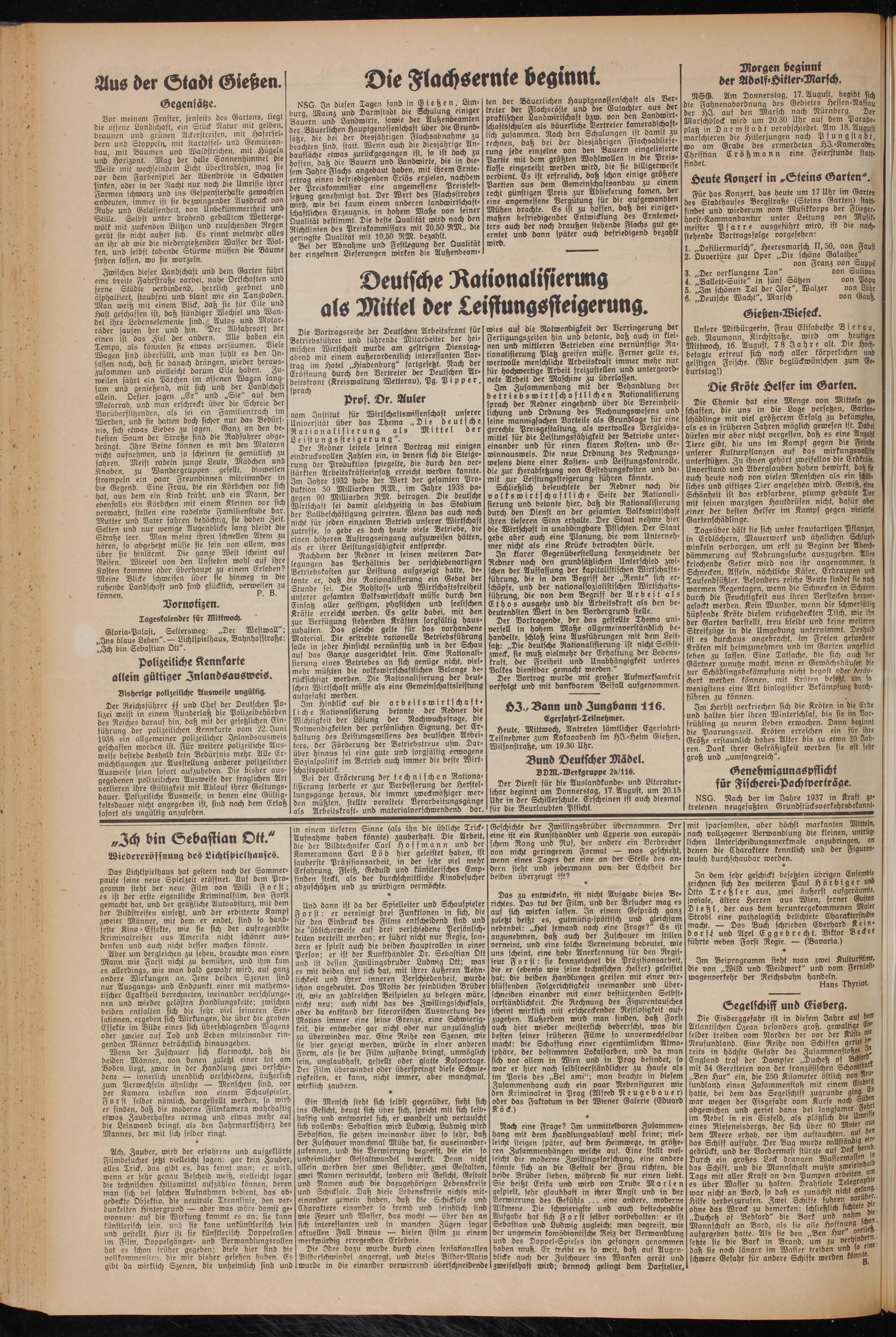 Gloria-Palast, Seltersweg: „Der Westwall"; „Ins blaue Leben". — Lichtspielhaus, Bahnhofstraße: ,Zch bin Sebastian Ott".