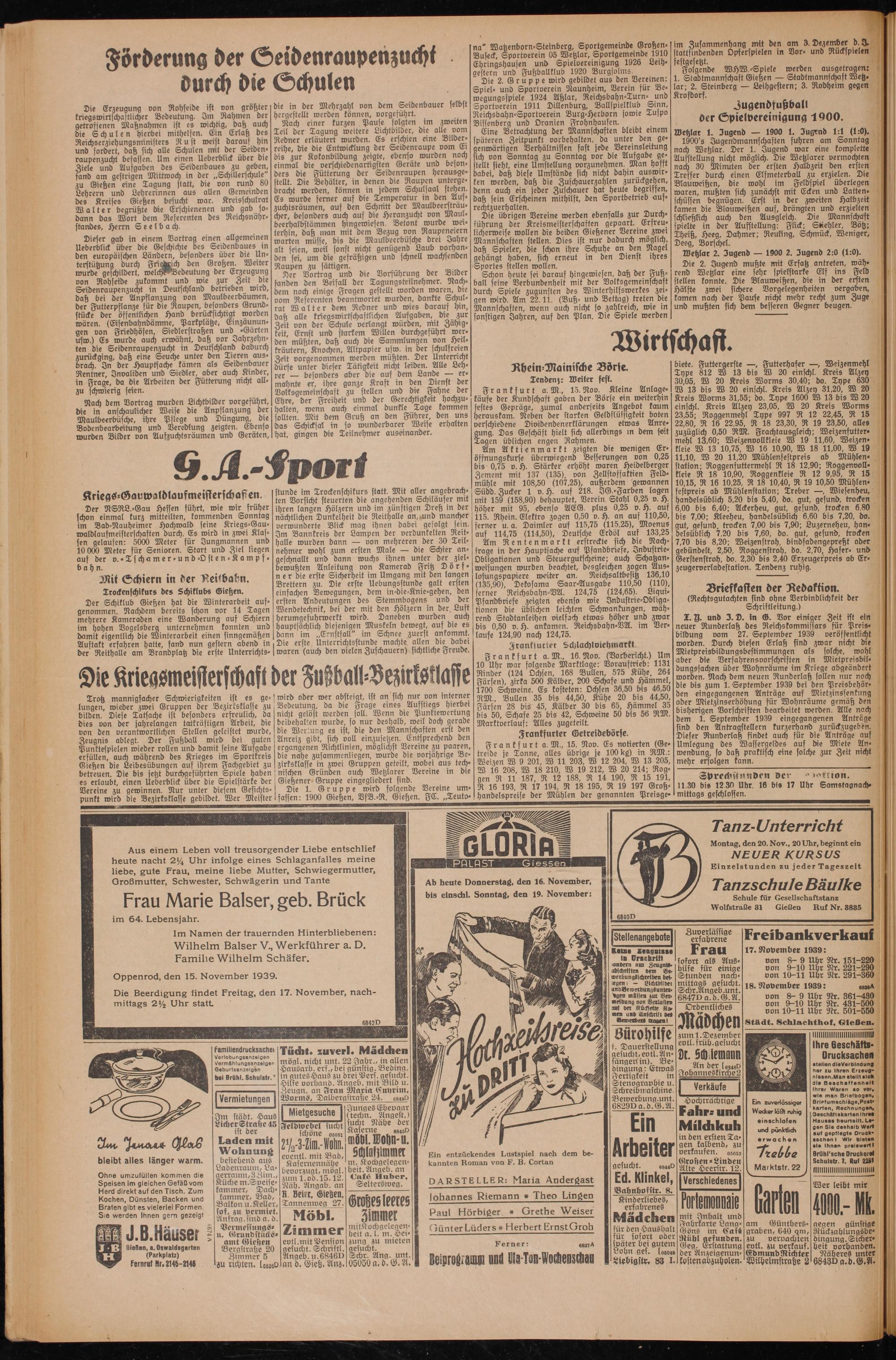Schon heute sei darauf hingewiesen, daß der Fußball seine Verbundenheit mit der Volksgemeinschaft durch Spiele zugunsten des Winterhilfswerkes zeigen wird. Am 22.11. (Buß- und Bettag) treten die Mannschaften, wenn auch nicht so zahlreich, wie in sonstigen Jahren, auf den Plan. Die Spiele werden
