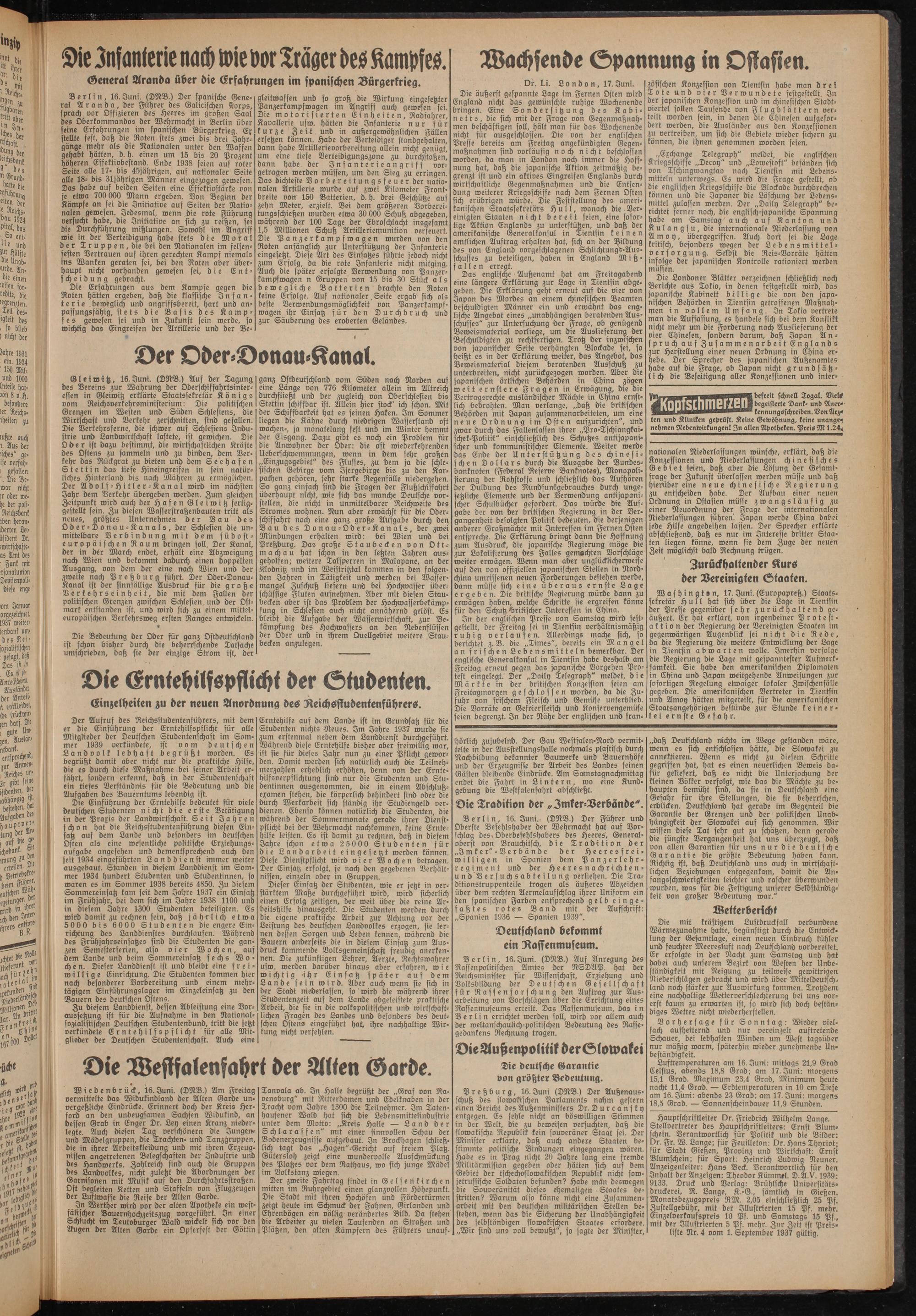 Gl ei witz, 16. Juni. (DNB.) Auf der Tagung des Vereins zur Wahrung der Oderschiffahrtsinteressen in Gleiwitz erklärte Staatssekretär Königs vom Reichsverkehrsministerium: Die politischen Grenzen im Westen und Süden Schlesiens, die Wirtschaft und Verkehr zerschnitten, sind gefallen. Die Verkehrsferne, die schwer auf Schlesiens Industrie und Landwirtschaft lastete, ist gewichen. Die Oder ist dazu bestimmt, die wirtschaftlichen Kräfte des Ostens zu sammeln und zu binden, dem Verkehr das Rückgrat zu bieten und dem Seehafen Stettin das tiefe Hin-eingreifen in sein natürliches Hinterland bis nach Mähren zu ermöglichen. Der Adolf-Hitler-Kanal wird im nächsten Jahr dem Verkehr übergeben werden. Zum gleichen Zeitpunkt wird auch der Hafen Gleiwitz fertiggestellt sein. Zu diesen Wasserstraßenbauten tritt als neues, größtes Unternehmen der Bau des Oder-Donau-Kanals, der Schlesien die unmittelbare Verbindung mit dem südost- europäischen Raum bringen soll. Der Kanal, der in dör March endet, erhält eine Abzweigung nach Wien und bekommt dadurch einen doppelten Ausgang, von dem der eine nach Wien und der zweite nach Preßburg führt. Der Oder-Donau- Kanal ist der sinnfällige Ausdruck für die große Verkehrseinheit, die mit dem Fallen der politischen Grenzen zwischen Schlesien und der Ostmark entstanden ist, und wird sich zu einem mitte-l- europäischen Verkehrsweg ersten Ranges entwickeln.