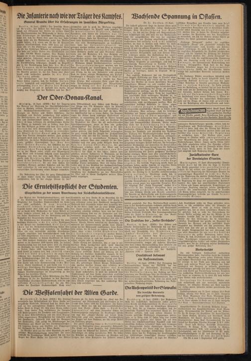 Zu diesem Landdienst, dessen Ableistung eine Voraussetzung ist für die Aufnahme in den Nationalsozialistischen Deutschen Studentenbund, tritt die jetzt verkündete Erntehilfspflicht für alle Mitglieder der Deutschen Studentenschaft. Auch eine